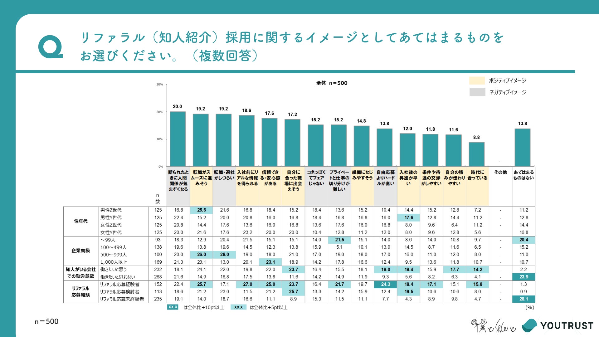 さらに、「リファラル採用に対して抱くイメージ」について尋ねたところ、ポジティブ・ネガティブの両面が挙げられました。