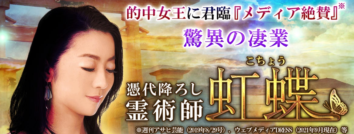 ・的中女王に君臨『メディア絶賛』驚異の凄業“憑代降ろし霊術師”虹蝶