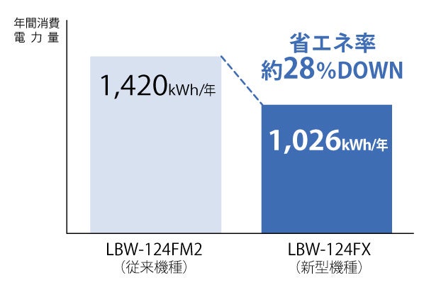 幅1,200mm LBW-124FXの場合は約28%ダウン。