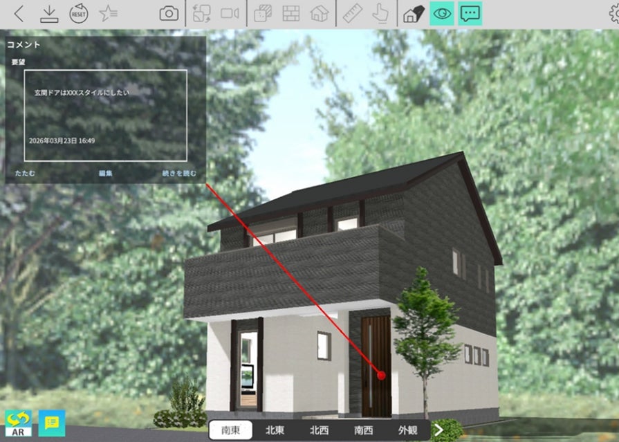 上でも確認できます。これにより、営業担当者からお施主様への情報共有がスムーズになり、打ち合わせ時の認識齟齬の低減や、コミュニケーションの効率化に寄与します。