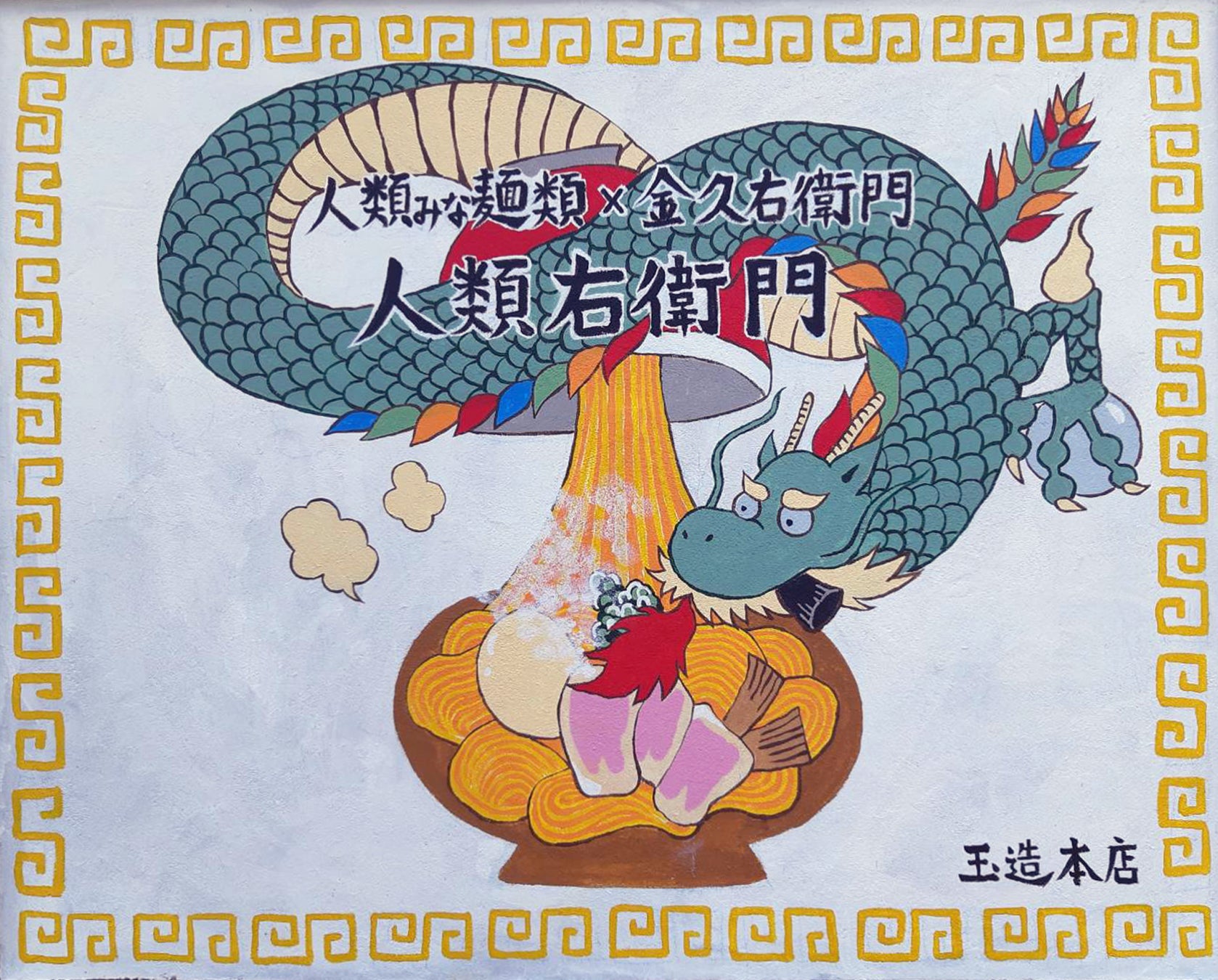 ⼤阪⾏列ラーメン店「⼈類みな麺類(⼤阪・南⽅)」を運営するUNCHI株式会社(本社:⼤阪市淀川区、代表取締役:松村貴⼤)は、株式会社Kingproject(本社:⼤阪市中央区、代表取締役:大蔵 義一)が運営する醤油ラーメン専門店「金久右衛門」とコラボレーションし、新店舗「人類右衛門」を9月2日(月)12時30分に大阪・玉造にてグランドオープンいたします。