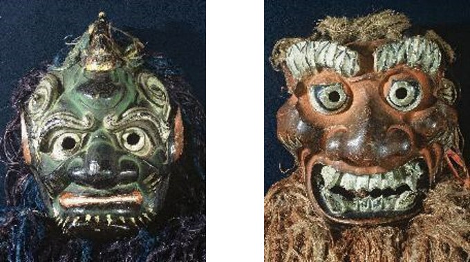儀式の際に鬼役が着用する『追儺面(ついなめん)』は、室町時代に制作されたと考えられる、県内で最も古い追儺面です。赤鬼面と青鬼面の個性的な表情に注目です。