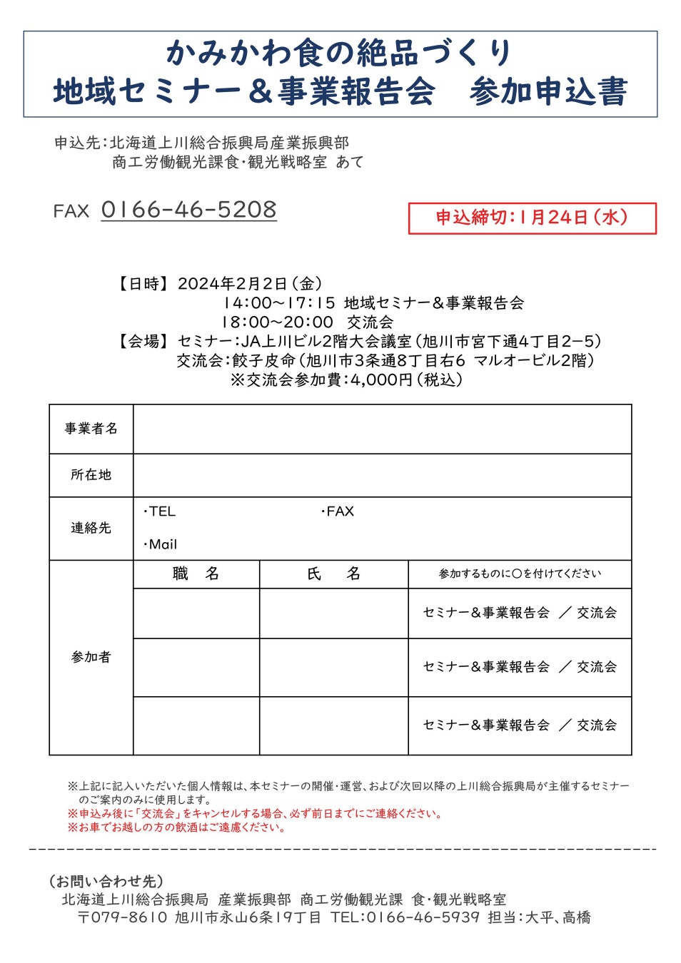 「かみかわ食の絶品づくり 地域セミナー&事業報告会」を開催します!