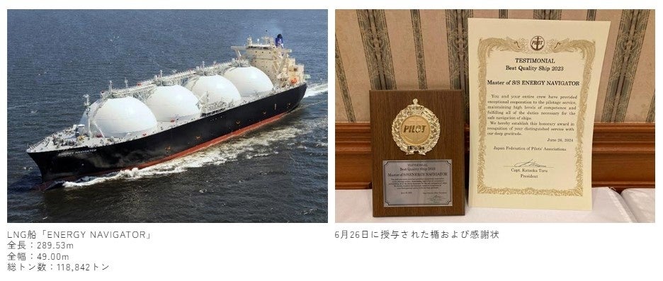 株式会社商船三井(社長:橋本剛、本社:東京都港区、以下「当社」)が運航するLNG船「ENERGY NAVIGATOR」が、日本水先人会連合会の2023年度「ベストクオリティーシップ賞」(註)を受賞しました。