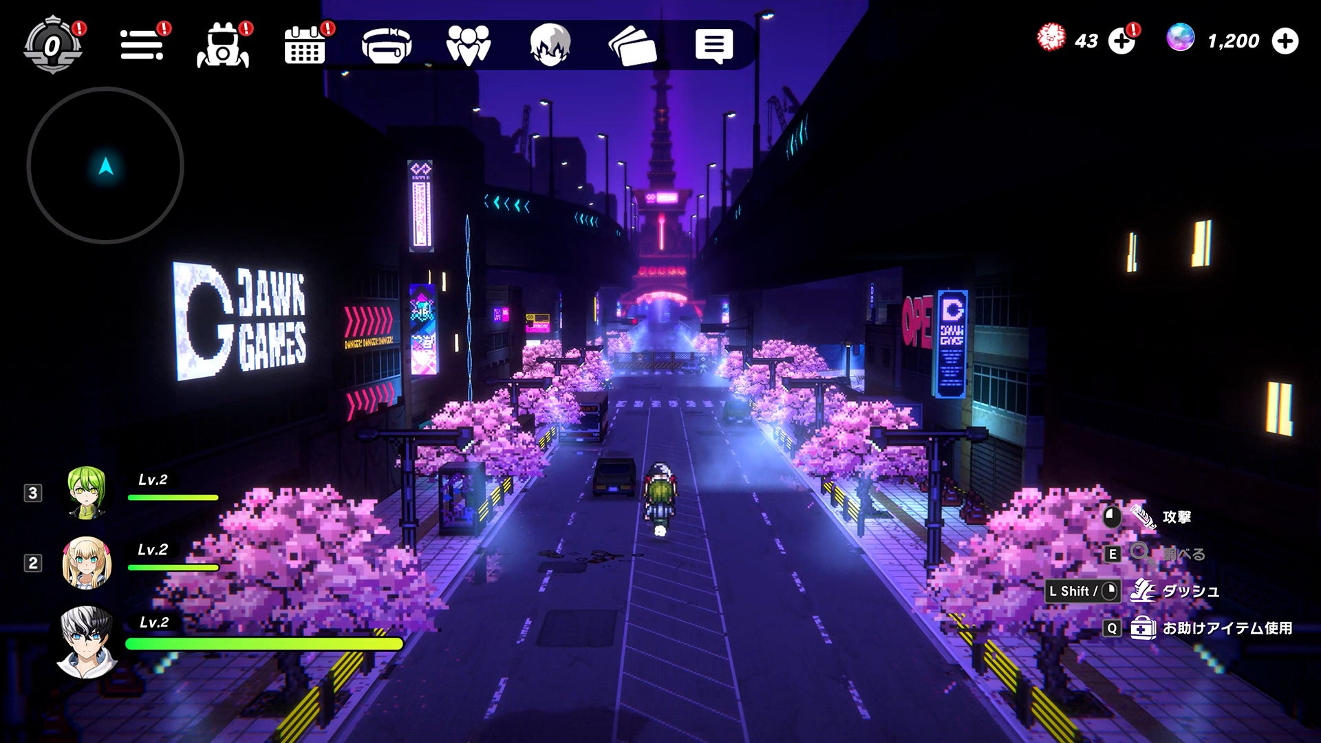 『トライブナイン』の探索パートでは、2Dドットで描かれたネオートーキョー国のシティを、実際にキャラクターを操作しながら冒険することで、ストーリーを進行していきます。