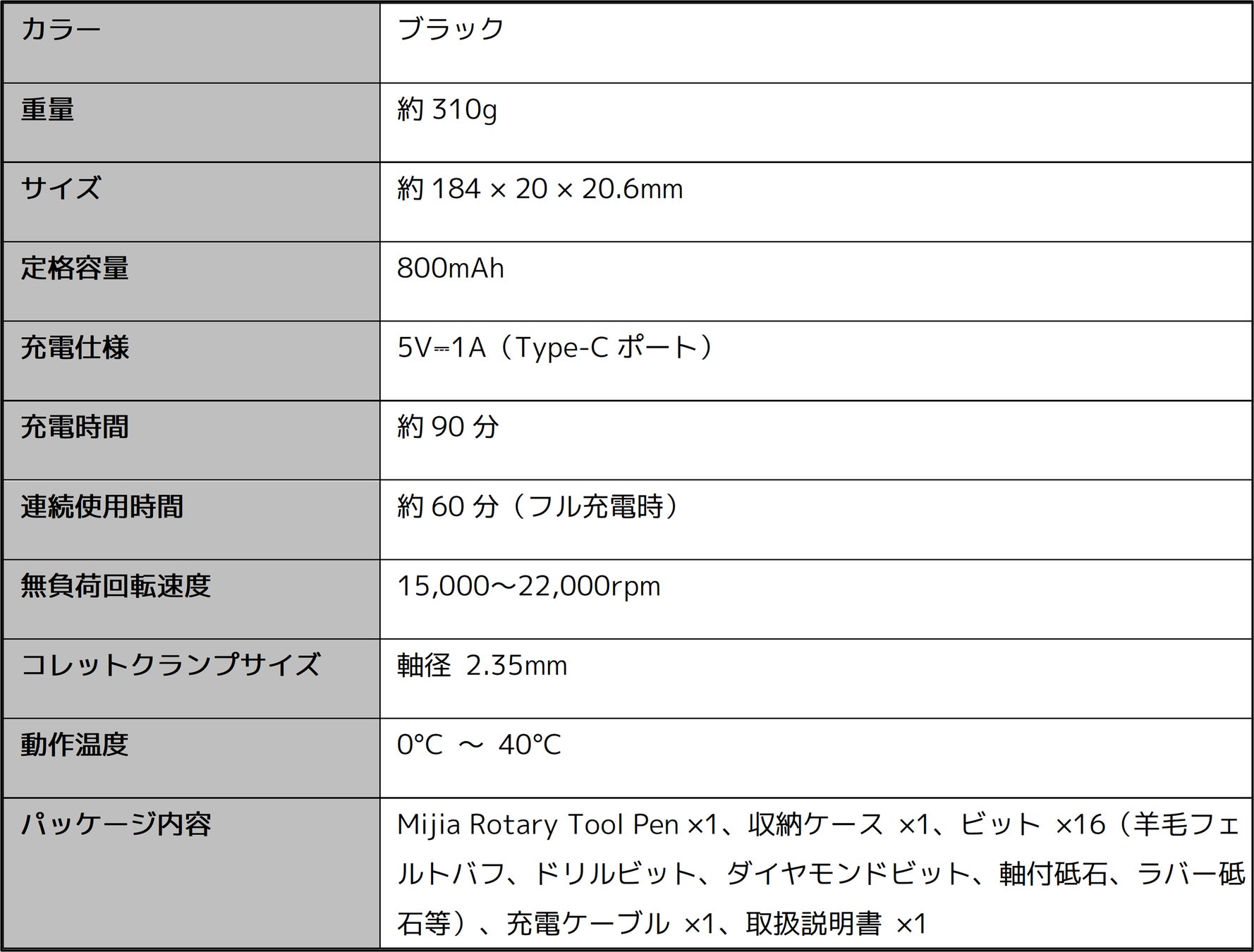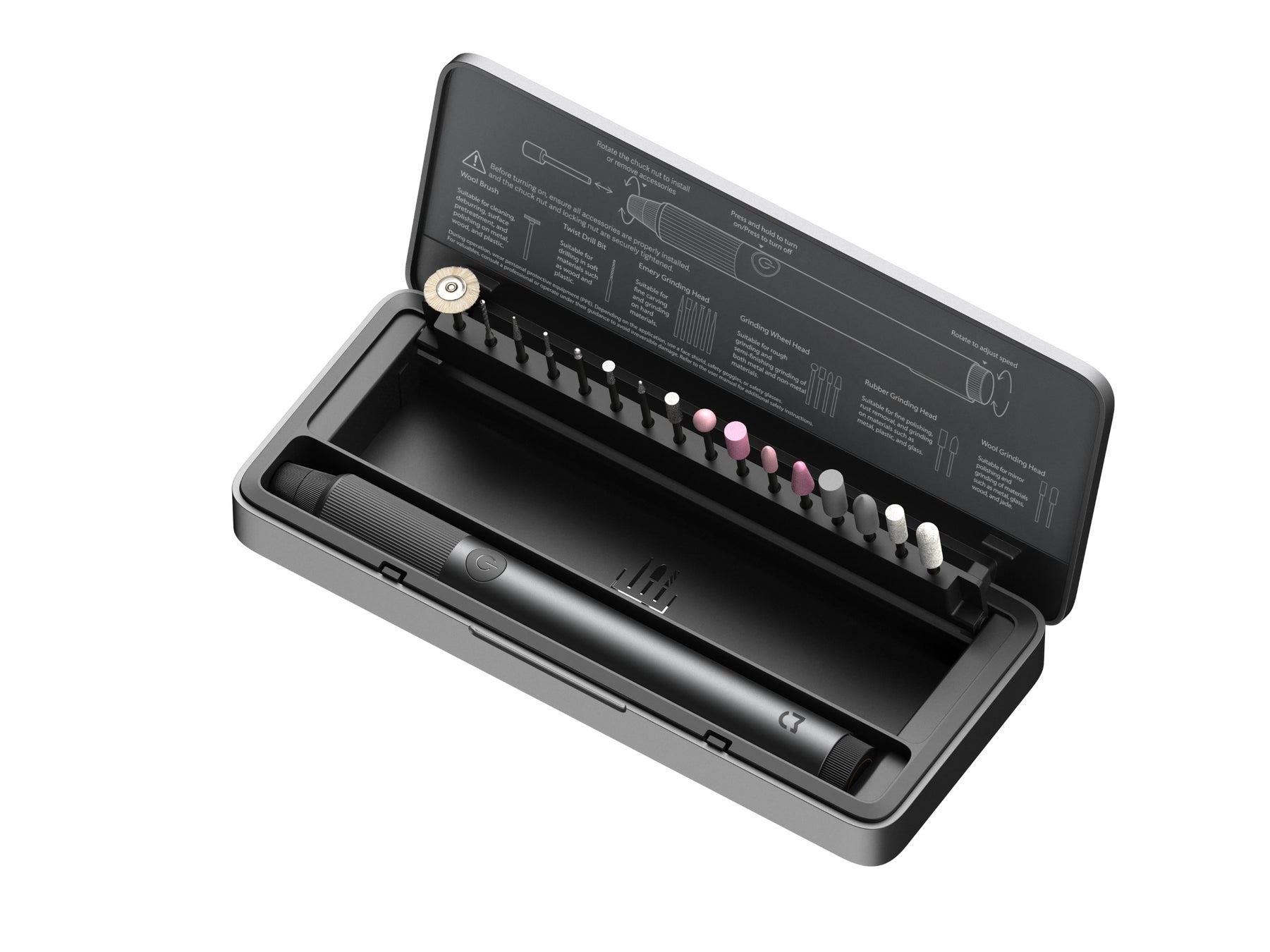 耐久性と安定性に優れた「ブラシレスコアレスモーター」を搭載し、最大22,000rpmの高速回転による精密なパフォーマンスを発揮します。電源ボタンと速度調整ノブのみのシンプル設計で、初心者でも直感的に操作可能。また、800mAhのバッテリーを内蔵し、フル充電で約60分間の連続使用ができるほか、電源に接続しながらの給電駆動にも対応しているため、長時間の創作活動も中断することなく楽しめます。