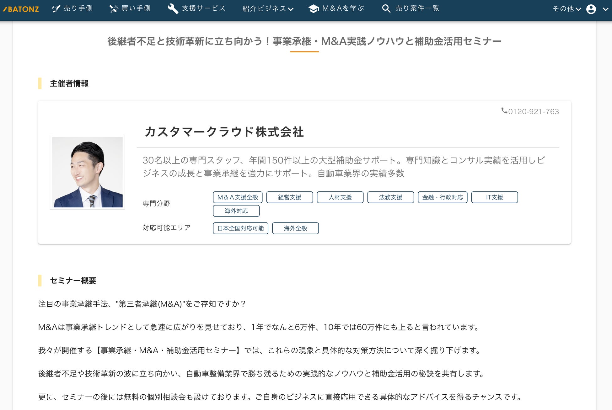 国内最大級の成約実績を誇るM&A総合支援サービス「BATONZ(バトンズ)」でも掲載中