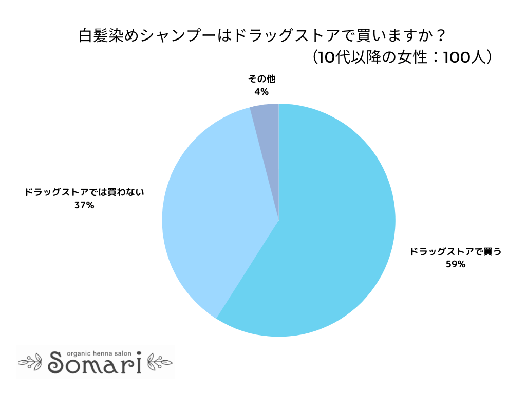 「白髪染めシャンプーをドラッグストアで買いますか?」とアンケート調査した結果、「ドラッグストアで買う」と答えたのは59%でした。
