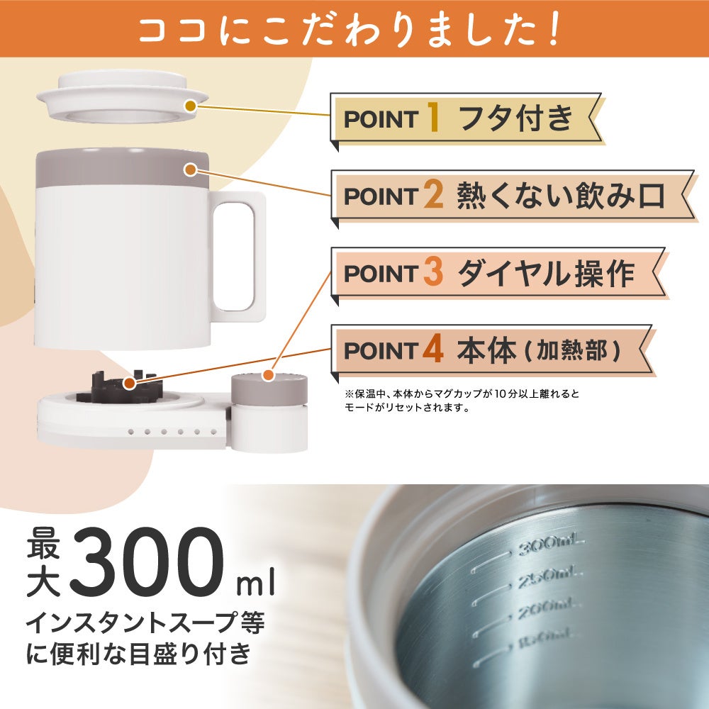 本製品は沸かして保温できる機能を備えた電気マグカップです。