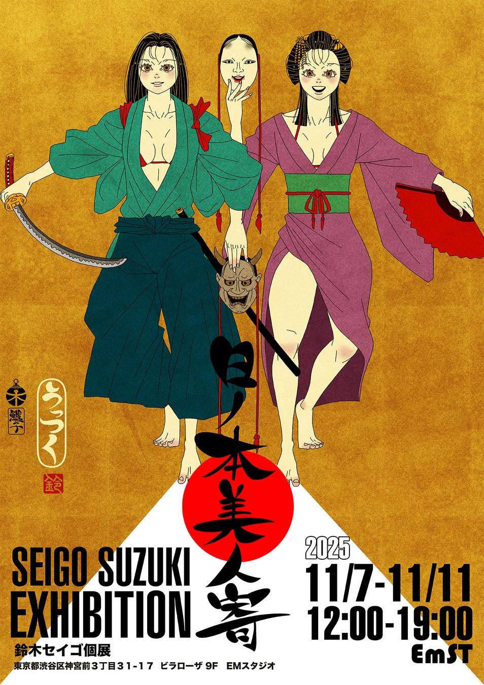 浮世絵風イラストレーター・鈴木セイゴの初画集『うっつく -日ノ本美人寄-』の発売を記念し、2025年11月7日(金)~11日(火)に原宿 EM Studioにて個展「日ノ本美人寄」を開催します。