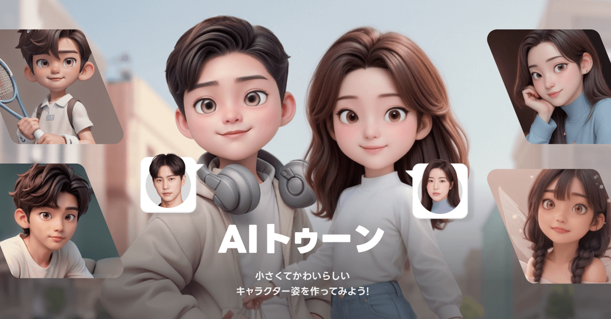 「AIトゥーン」は、自分の顔写真8〜12枚を登録すると、自分に似たかわいいキャラクターのビジュアルイメージをAIが50枚生成するコンテンツです。「AIトゥーン」は、『ベーシック』『デイリー』『スポーツ』『アドベンチャー』『ラブリー/ジェントル』の5つのカテゴリーの画像を、それぞれ10枚ずつ生成します。自分がキャラクターになったらどんな姿になるのか、カテゴリーごとに違う世界観の画像をお楽しみいただけます。同じ写真を登録しても生成されるビジュアルイメージは毎回異なります。