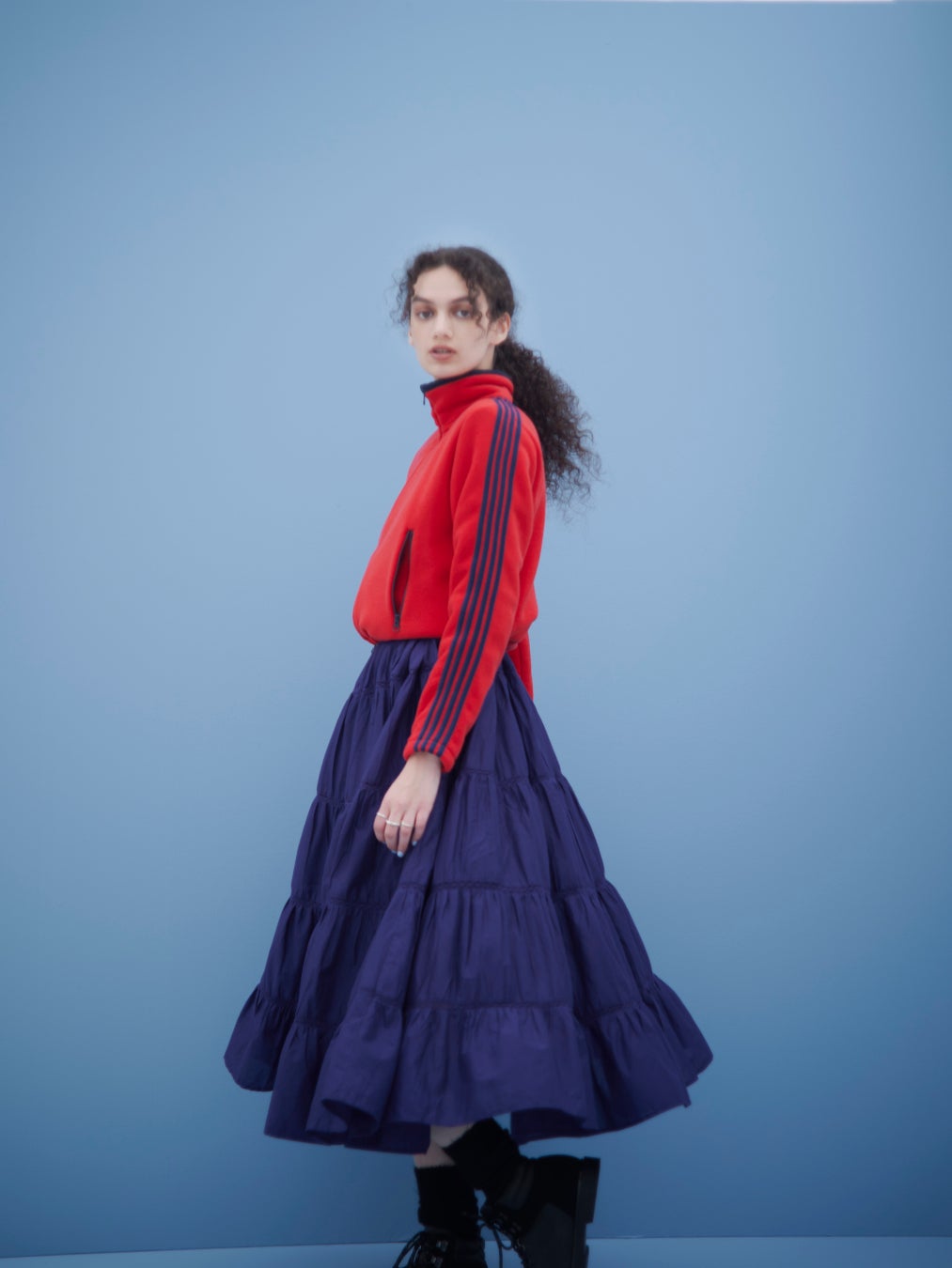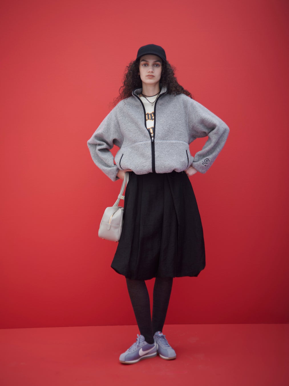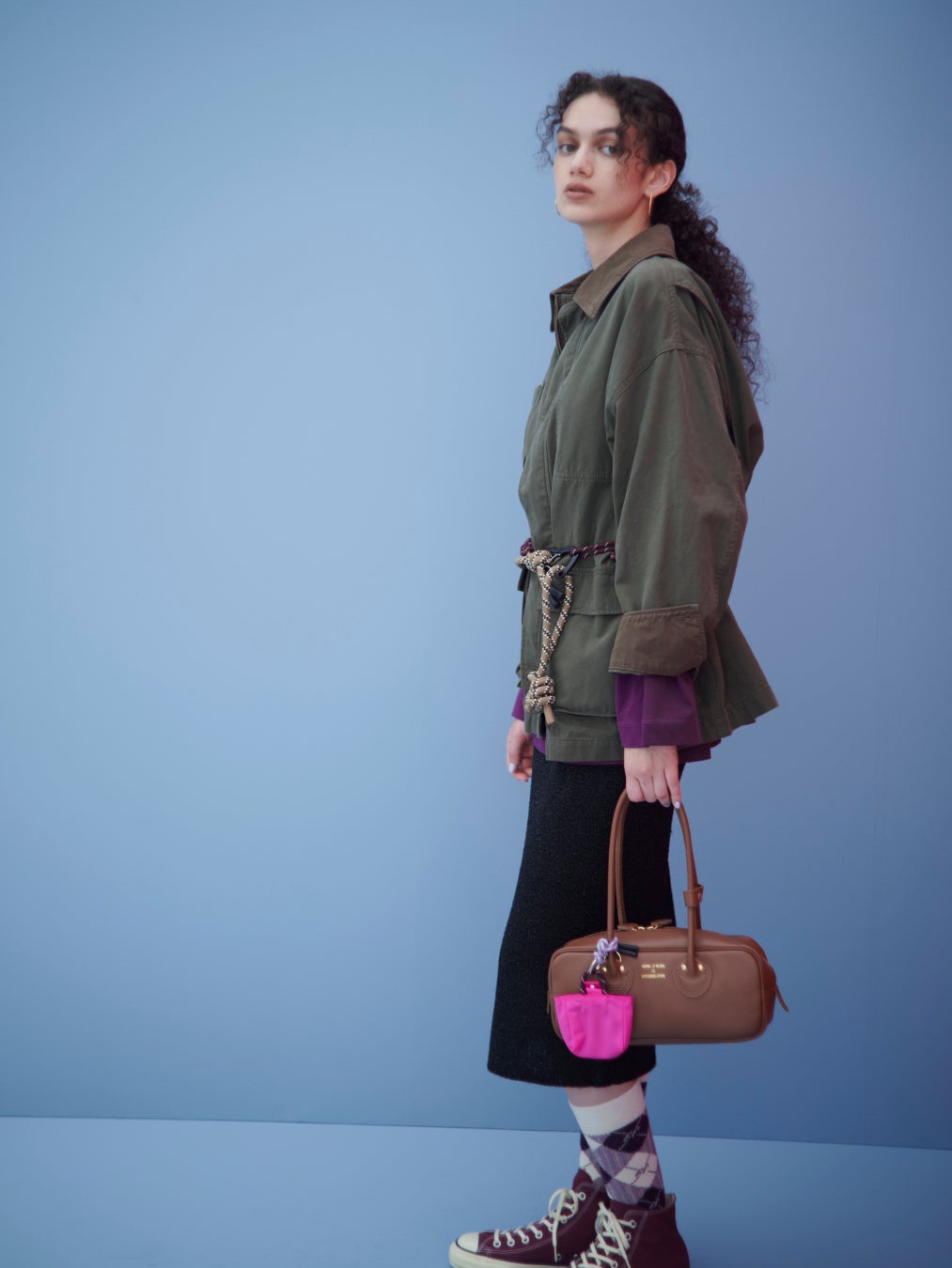 シックな装いにスポーツ要素をプラスしたスタイリングが、今季のRHCの気分。ドレープがたっぷりとあしらわれた、ロンハーマン・RHC ロンハーマン合同別注のマーレットのドレス。ボリューミーなスカートラインを活かし、ショート丈のフリースジャケットをスタイリング。また、RHCオリジナルラインからは、スパンコールを編み込んだ、華やかなタイトスカート。ボーイズライクなシルエット×女性らしいシルエットで、アクティブに綺麗を着こなしたスタイリングに。そして、上質な素材と小ぶりなデザインが繊細な女性らしさを格上げしてくれる、トッズとの人気コラボレーションバッグ。時代に左右されない普遍的な美しさを纏うデザインは、シンプルなスタイリングに洗練された上品さを演出します。