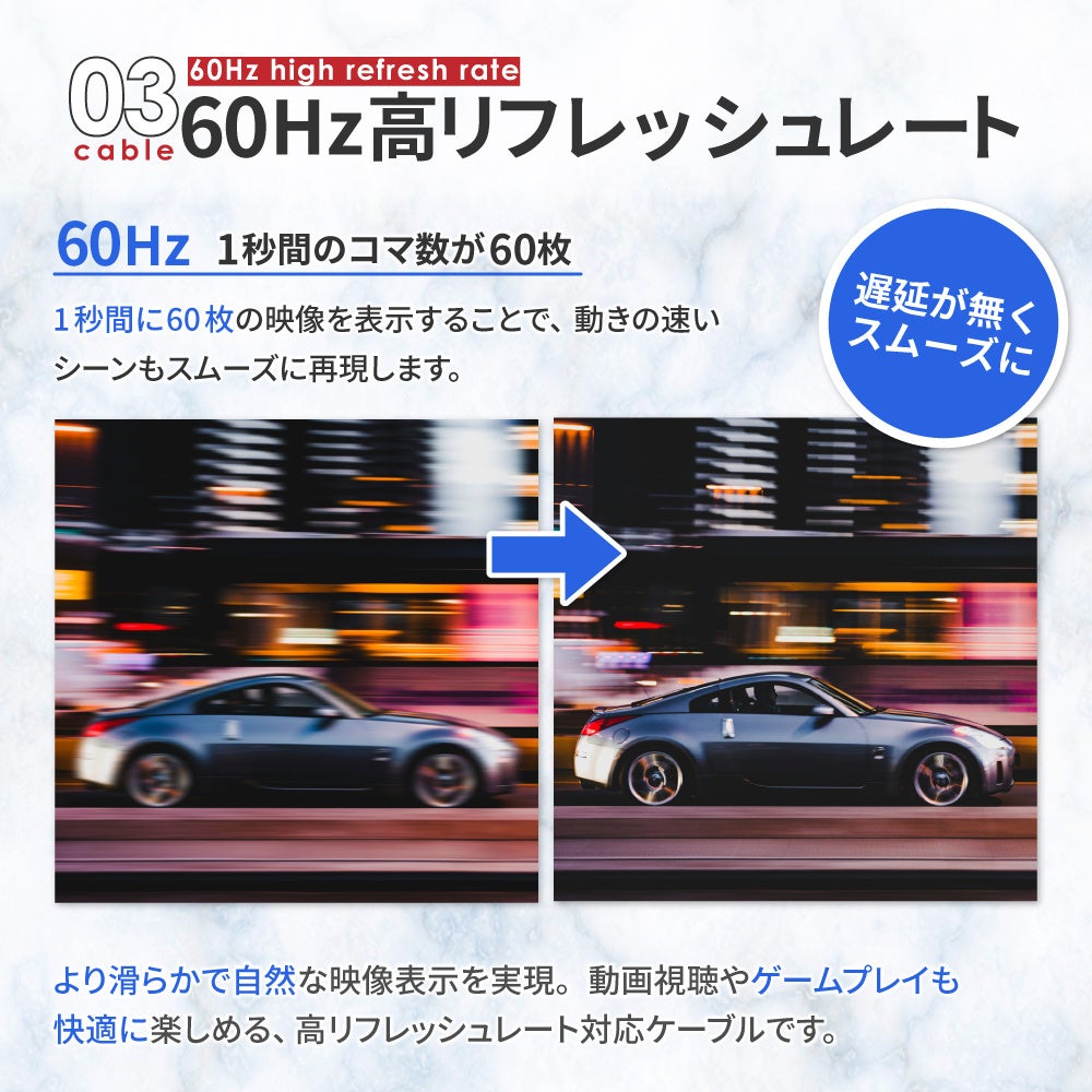 1秒間に60フレームを表示する60Hz対応で、動きの速い映像も滑らかに再生。映像の遅延やブレを抑え、ゲームもストレスフリーに楽しめます。