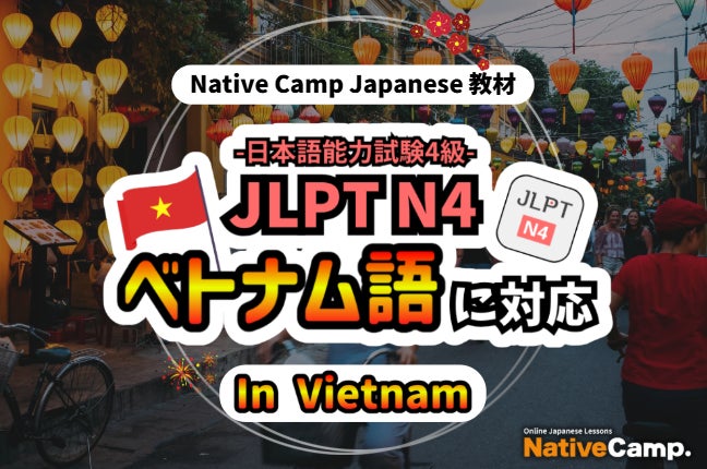 株式会社ネイティブキャンプ(本社:東京都渋谷区、代表取締役社長:谷川国洋)が提供するオンライン日本語会話サービス『Native Camp Japanese』は、このたび、教材「日本語能力試験N4」(JLPT N4)が、新たにベトナム語に対応いたしました。