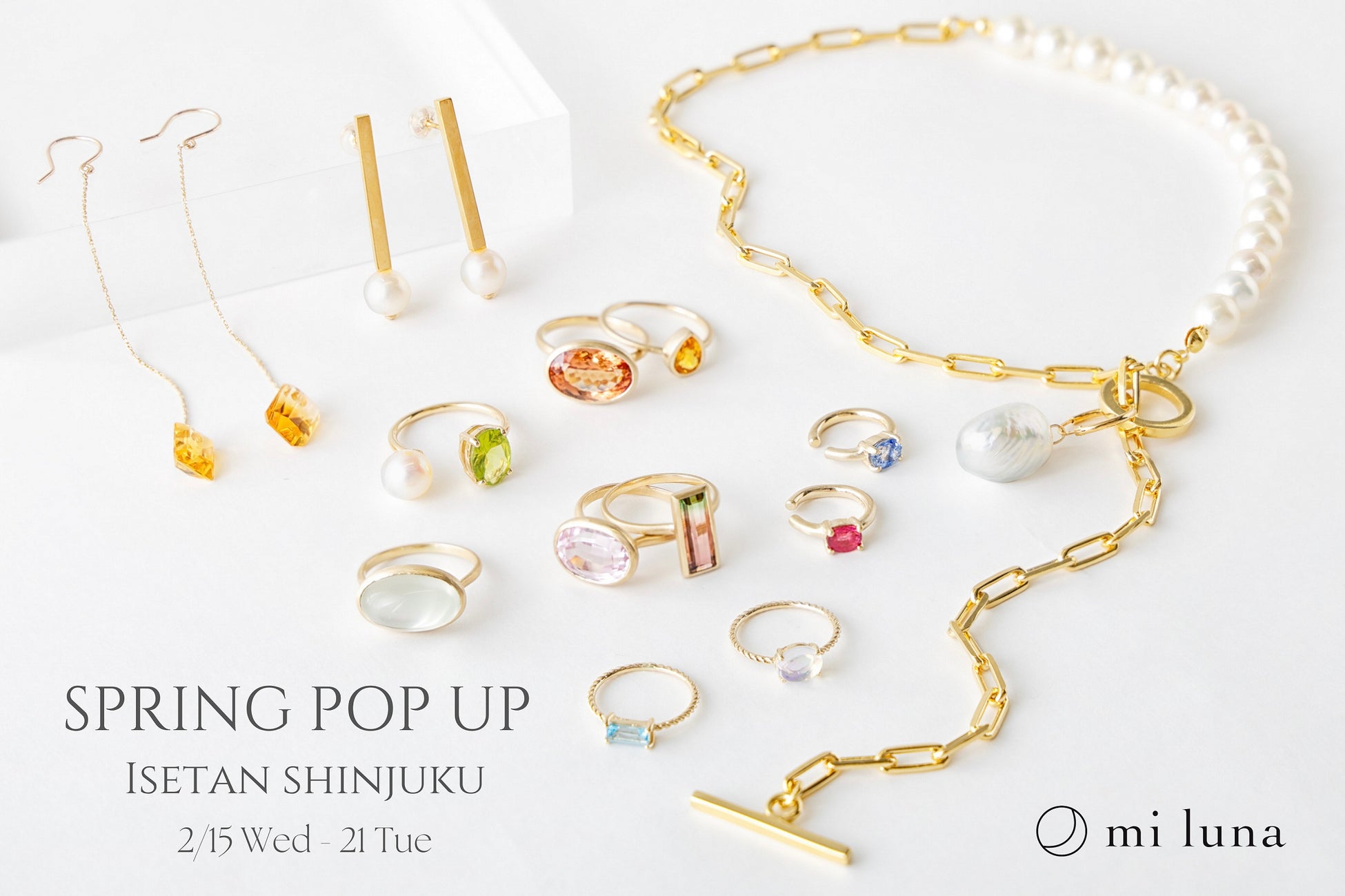 第2弾の発売を記念して、2023年2月15日(水)~21日(火)の7日間で、伊勢丹新宿店 本館2階 アーバンクローゼット(東京都新宿区)で開催されるD2Cファッションブランドを集めたイベント「TOKYO ICONIQ」にてお披露目します。また、春を彩るピンクの天然石やパールのコレクションの販売、「カスタムジュエリー」のオーダーも承ります。店頭で直接見て、触れて、選べる機会ですので、ぜひご利用ください。