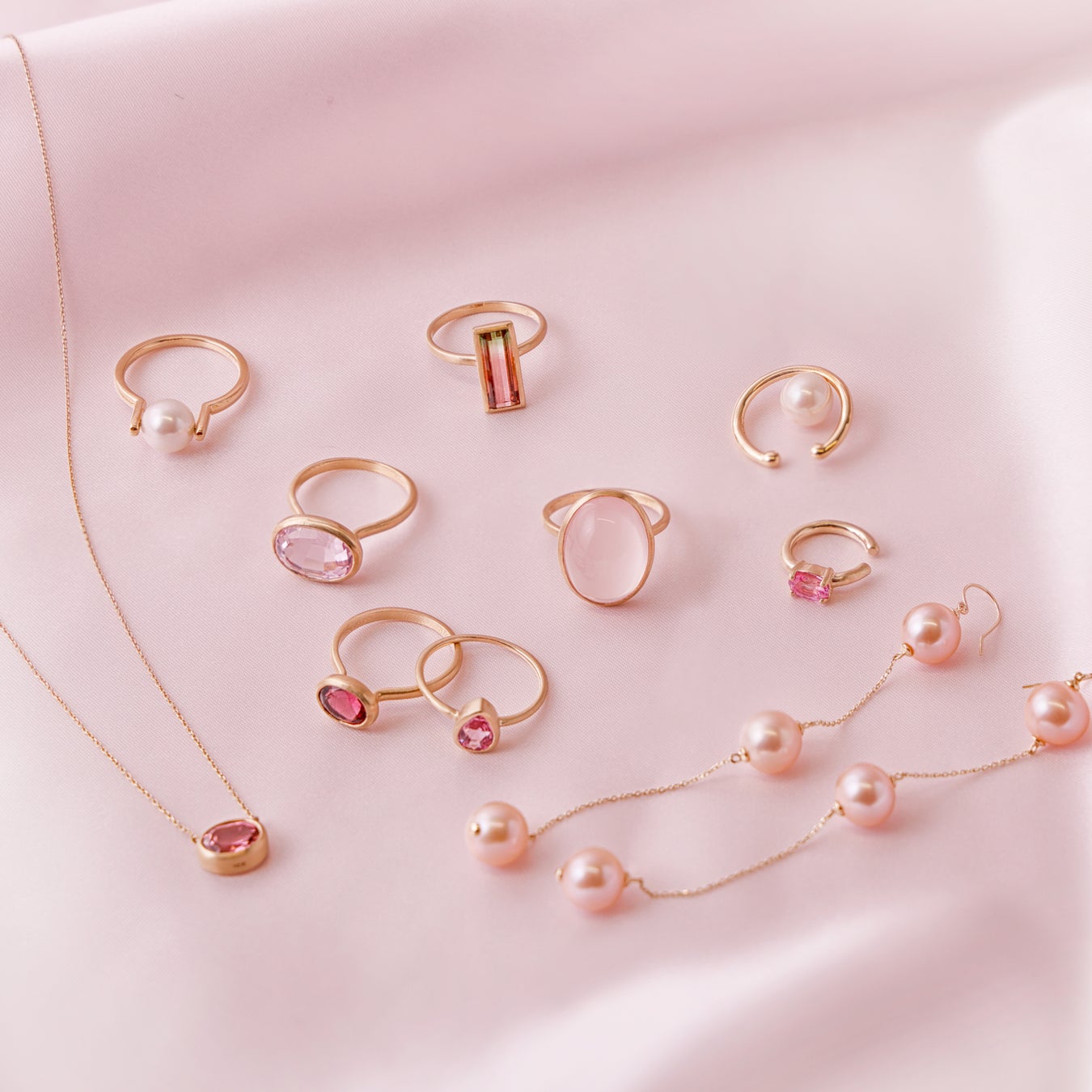 mi lunaでは、別注コレクションの発売に加えて、今回のテーマ 「NEW NAVY」「NEW PINK」に合わせ華やかな春を呼び寄せるピンクカラーの天然石やフォーマルな装いが多くなる季節に大活躍するパールのコレクションを中心に販売するだけではなく、自分でカラーストーンを選ぶことができる「カスタムジュエリー」のオーダーも承ります。