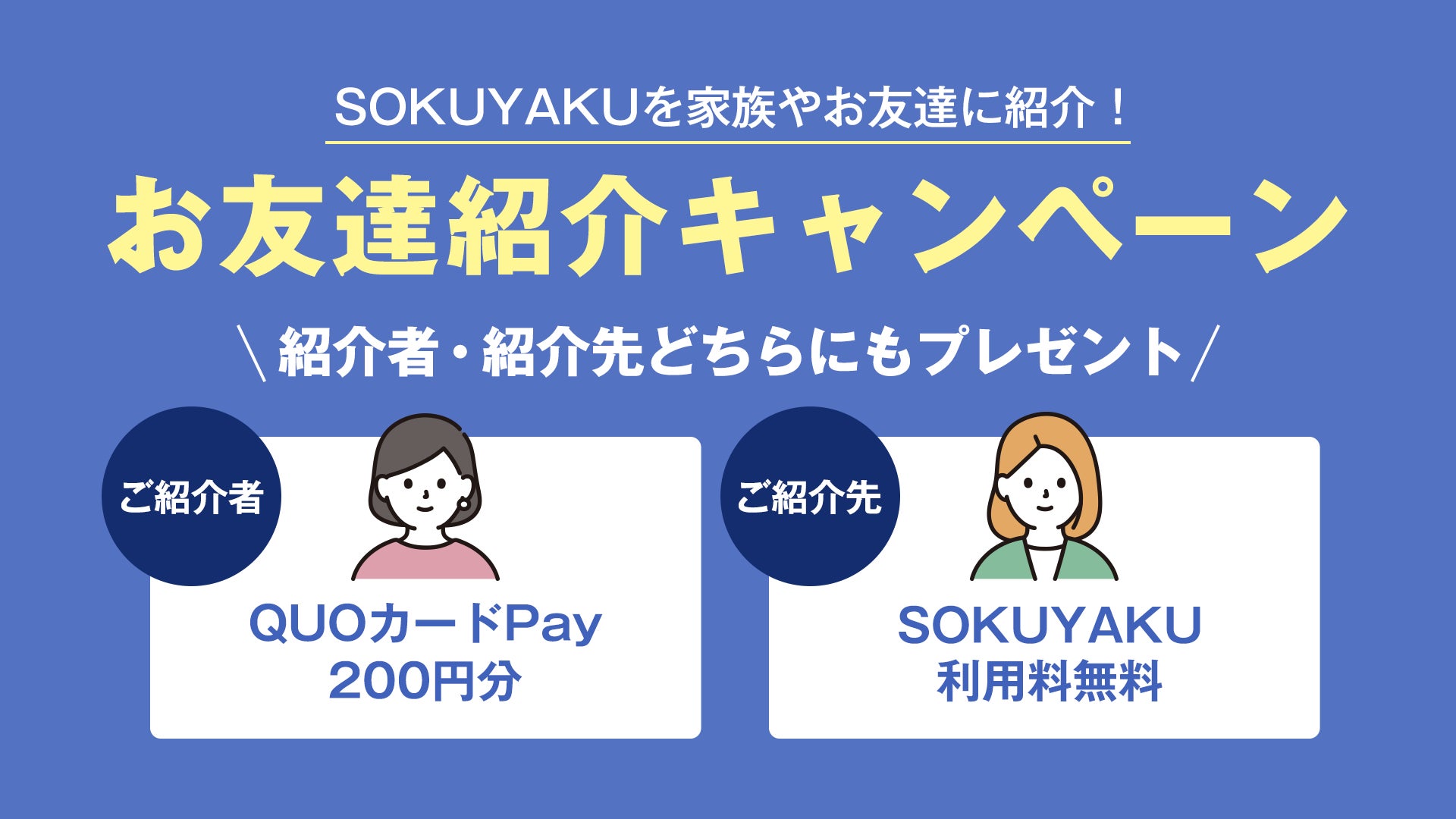 ~ ご紹介者にはQUOカードPay200円分をプレゼント、ご紹介先の方はSOKUYAKU利用料初回利用分が無料に ~