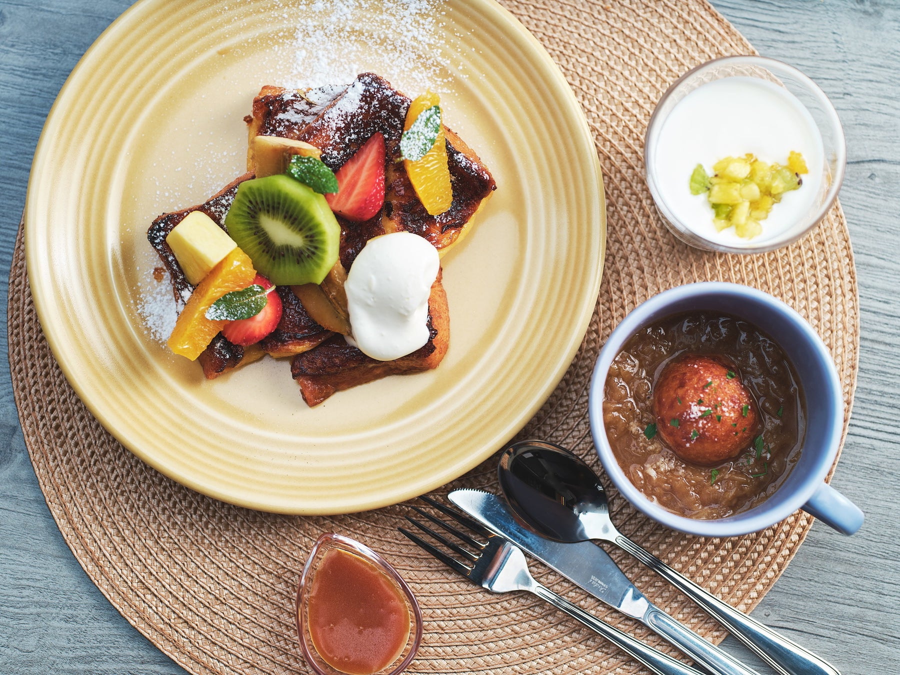 季節フルーツとハニーフレンチトースト