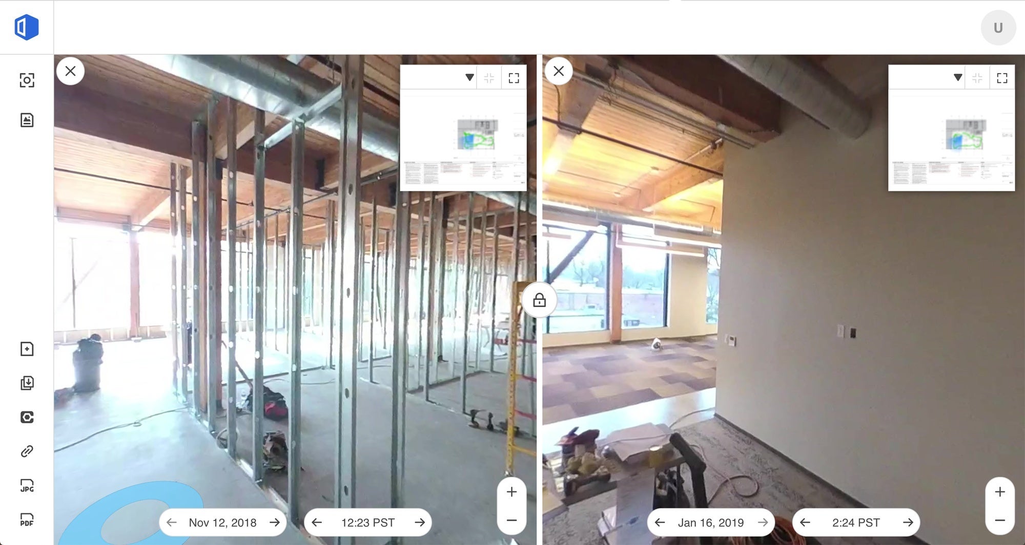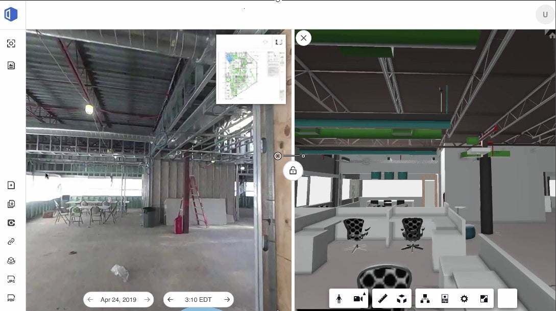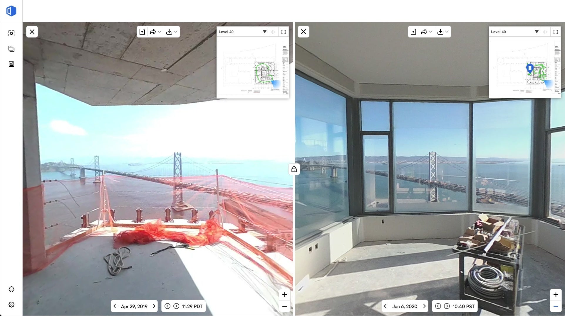 また、リモート環境からウェブ経由で進捗状況を確認することができるため、それぞれの現場へ赴くことなく、複数のプロジェクトを管理することが可能となります。データの共有、既存ツールとの統合はもちろんのこと、ブラウザ上で現場の最新状況とBIMデータを比較するなどの機能を備えています。