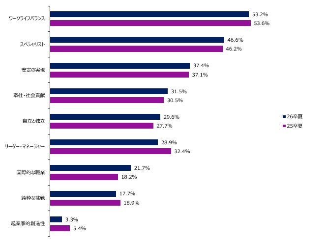 ・<図3>より、キャリアゴールは昨年25卒の学生を対象した調査と比べ、1位~5位まで変動がない。