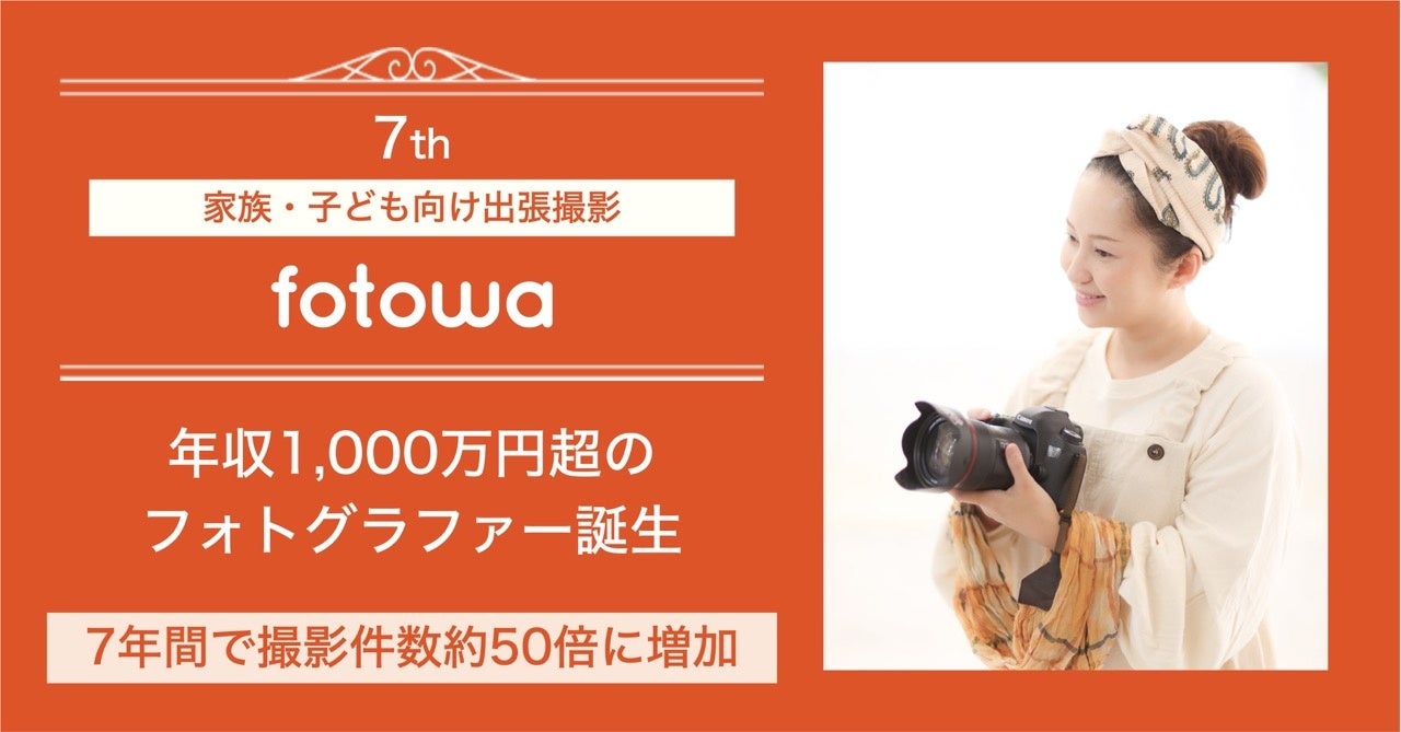 家族・子ども向け出張撮影「fotowa」7年で撮影件数約50倍!年収1,000万円超のフォトグラファーも誕生