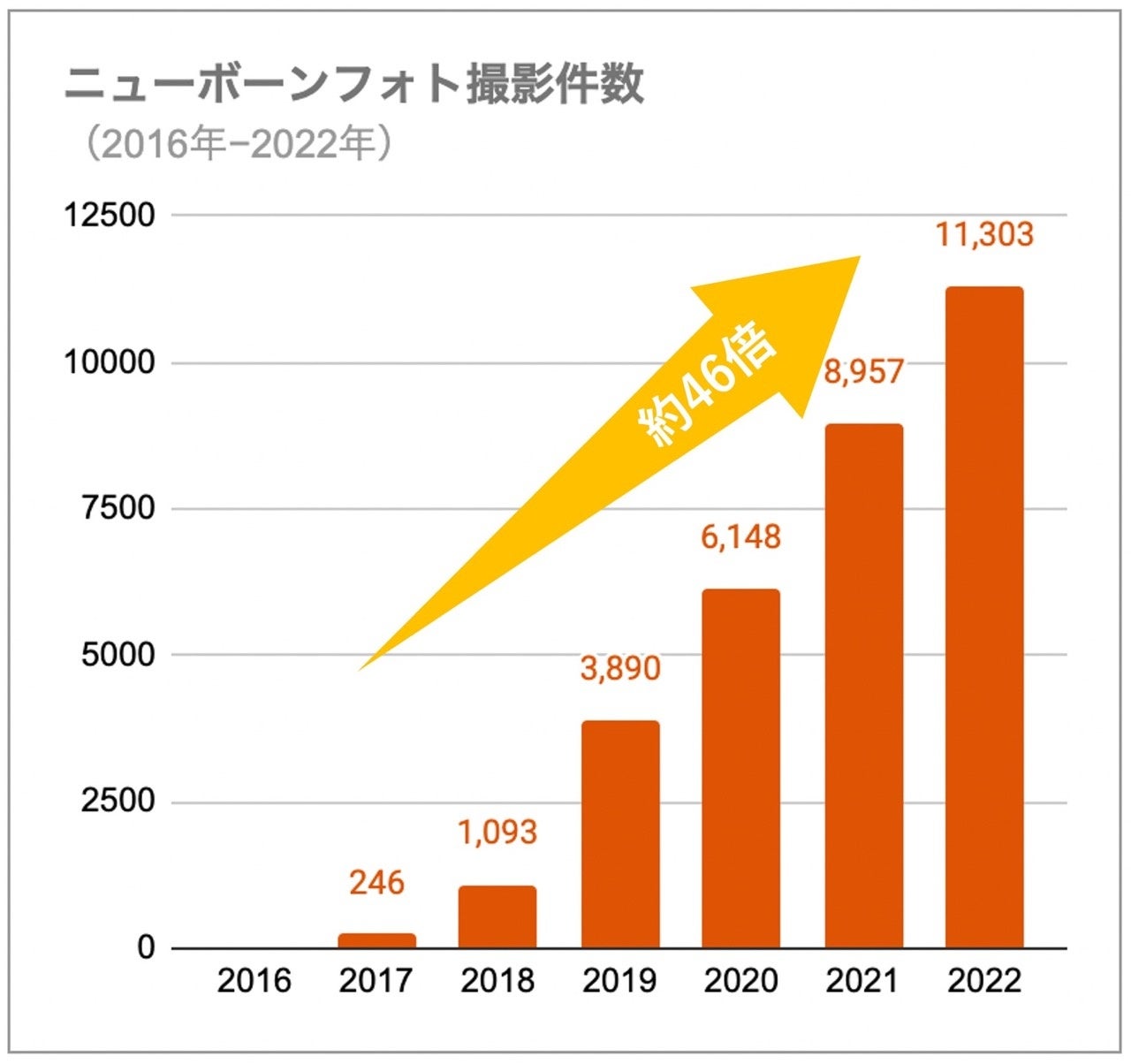 - 出生数最低でも新生児撮影「ニューボーンフォト」は6年で約46倍に急成長