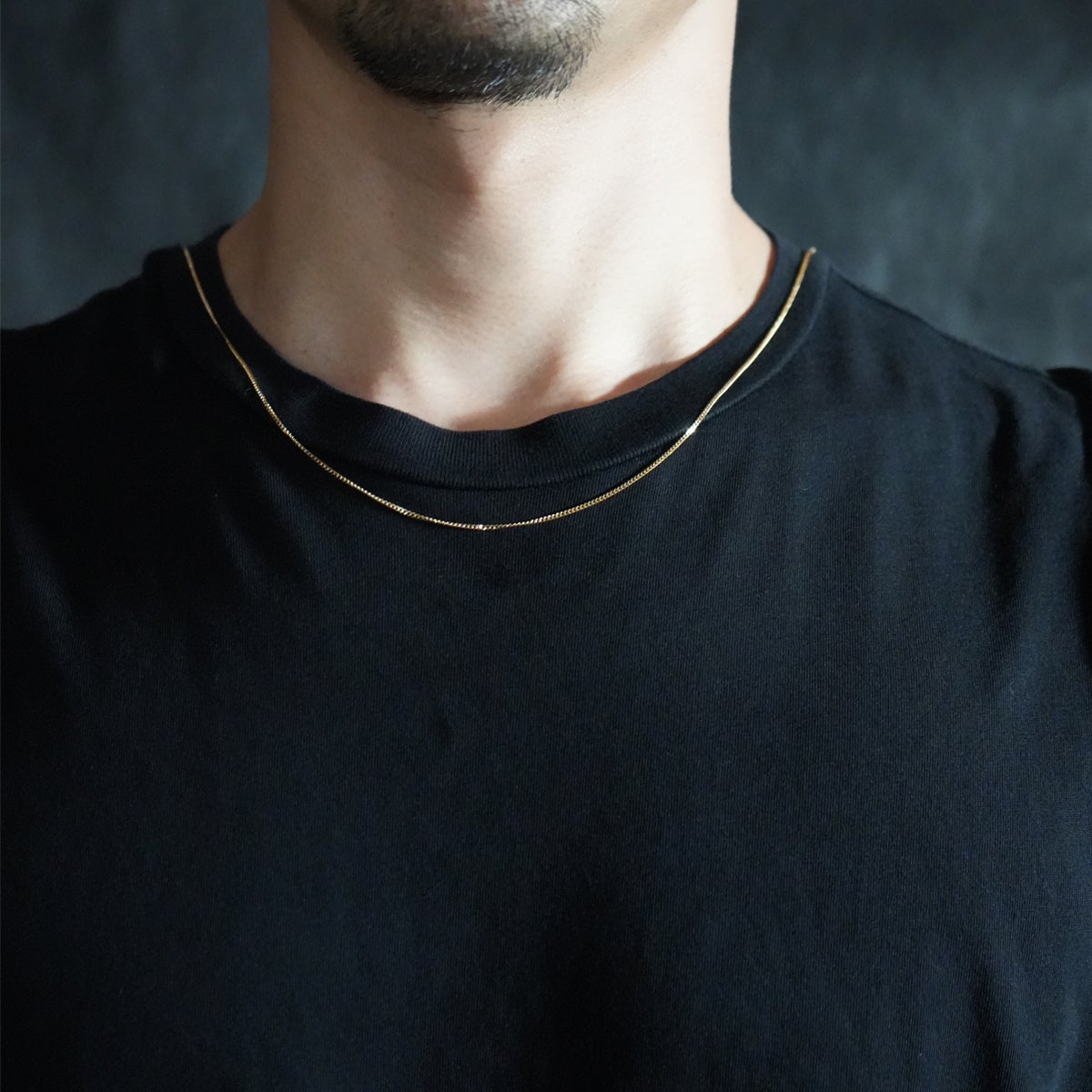 日常使いしながらも、価値ある資産として楽しむことができるのが18禁(18金)ネックレスの魅力です。無駄のないデザインが、ジュエリーの本質的な美しさを際立たせ、着ける人の個性も引き立てます。極めて繊細なディテールと滑らかなカーブが首元を美しく引き立て、14金や10金に比べて金の含有量が多いため、色味が深く、肌に優しくなじみます。また18金は純度が高く、アレルギーを引き起こしにくい特性があり、敏感肌の人にも比較的安心して着用ができます。時代を超えて愛される素材で、特別な瞬間にふさわしい贈り物としても最適です。あずきチェーン1種と喜平チェーン2種をご用意しております。