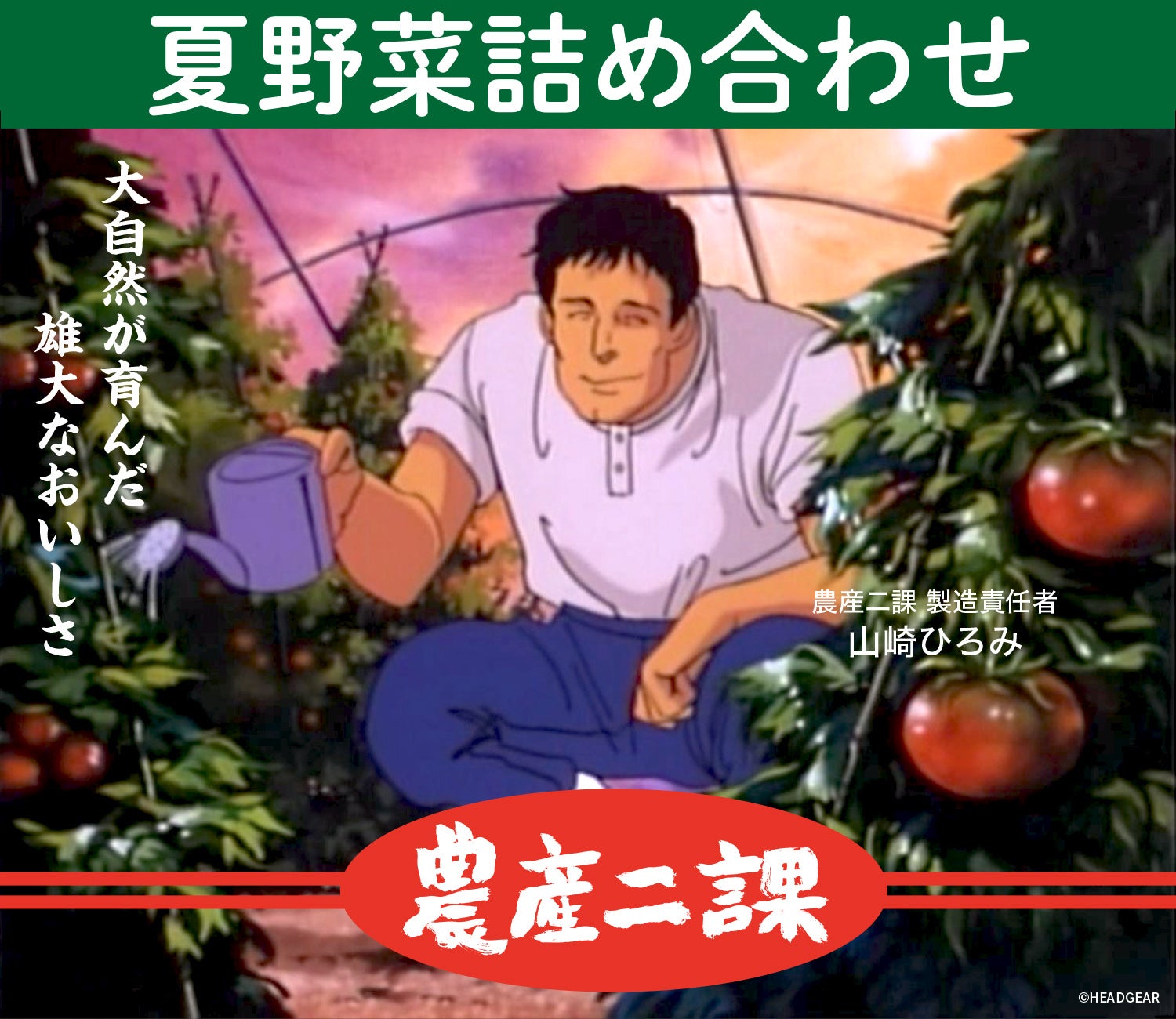 『機動警察パトレイバー』に登場する山崎ひろみ完全監修、特車二課第2小隊の野菜ブランド「農産二課」夏野菜セットの販売を6月11日より開始いたしました。