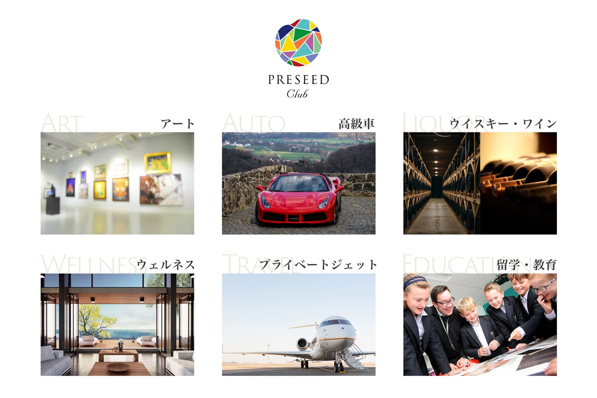 高級車、アート、ウエルネス、留学、洋酒等のジャンル