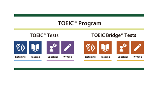 TOEIC Listening & Reading Test、TOEIC Speaking & Writing Tests、TOEIC Bridge® Listening & Reading Tests、TOEIC Bridge Speaking & Writing Testsの総称。4つのテストを合わせたTOEIC Programは世界160カ国、約14,000団体で実施されています。