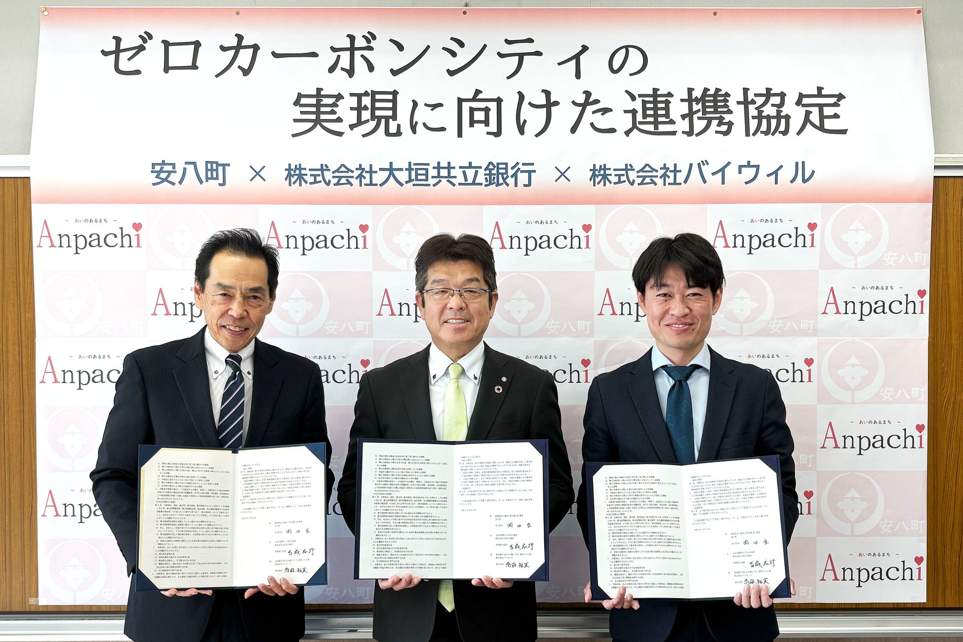 岐阜県安八町、大垣共立銀行、バイウィルがゼロカーボンシティの実現に向けた連携協定を締結
