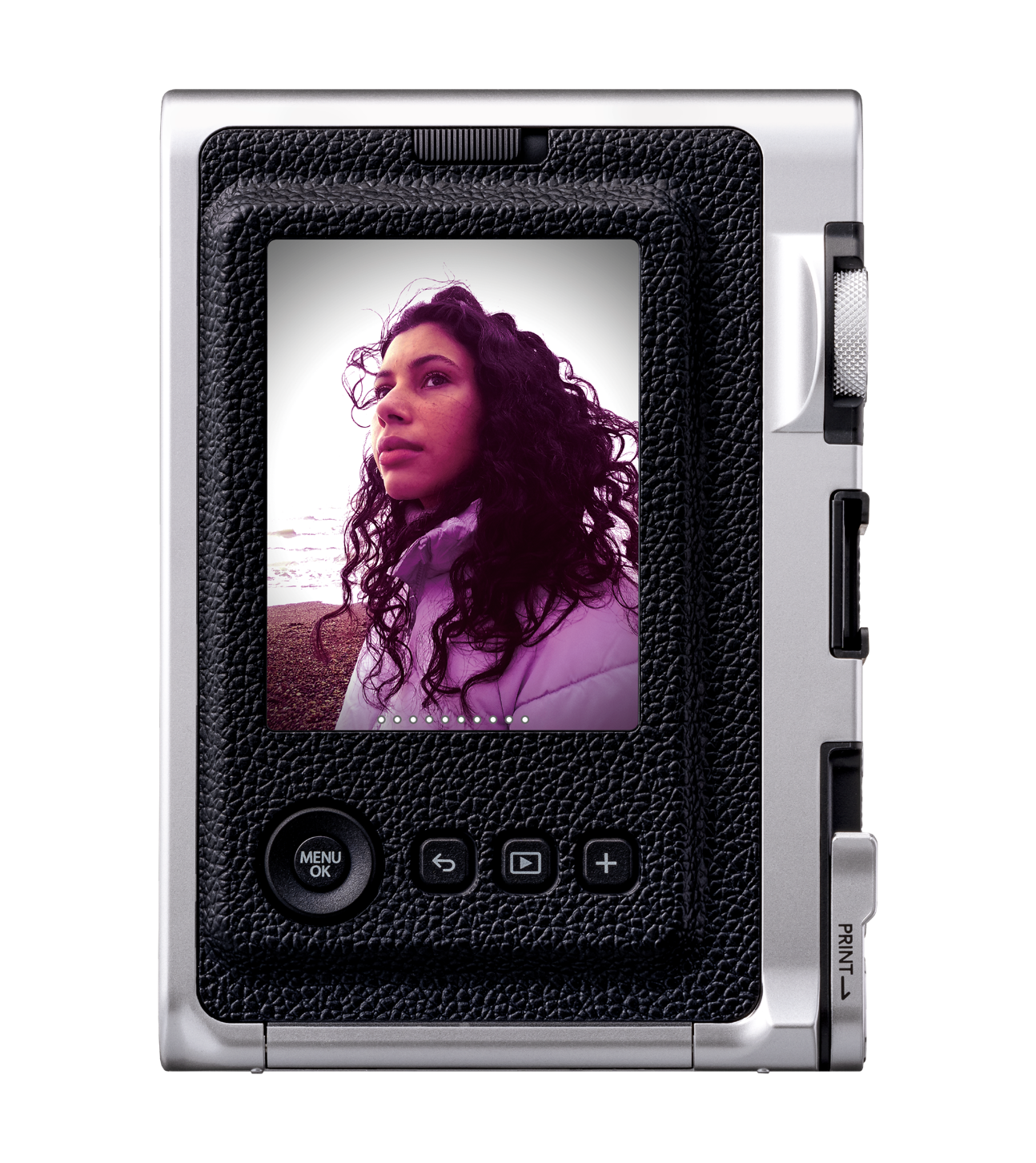 2021年に発売した「mini Evo」は、カードサイズの「ミニフォーマットフィルム」に対応し、デジタル技術を搭載したハイブリッドインスタントカメラです。「ソフトフォーカス」や「光漏れ」などの10種類のレンズエフェクトと「モノクロ」や「レトロ」などの10種類のフィルムエフェクトを搭載。レンズエフェクトとフィルムエフェクトを自在に組み合わせることで、「100通りの撮影エフェクト」を実現し、情景を感じたままにチェキプリントで表現できます。カメラ本体は、高級感のあるクラシックなカメラデザインで、操作音など細部までこだわって設計したレンズダイヤルやフィルムダイヤル、プリントレバーのアナログ操作感が特徴です。専用アプリでスマホと連携することで、スマホで撮った画像を「mini Evo」で手軽にプリントしたり、「mini Evo」でプリントした写真をINSTAXフレーム付き画像としてスマホに保存しSNSなどに簡単に共有できます。