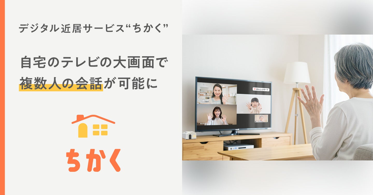 株式会社チカクは、弊社が開発し、株式会社NTTドコモが提供する“デジタル近居”サービス「ちかく」(以下「本サービス」)において、1人暮らしの高齢者が、自宅のテレビの大画面で複数の家族や親戚などと顔を見ながら同時に会話できるグループ通話機能を実装いたしました。