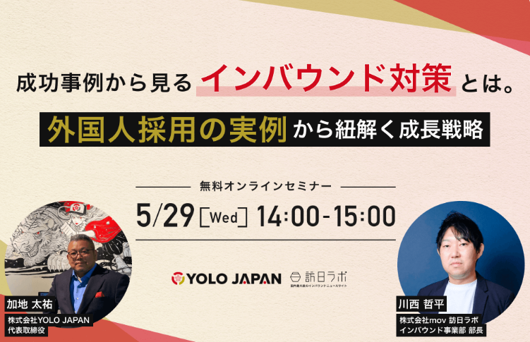 【今すぐ始めないと後悔する!】訪日ラボ×YOLO JAPANが語る!「成功事例から見るインバウンド対策とは。外国人採用の実例から紐解く成長戦略」~12回シリーズ第1弾~