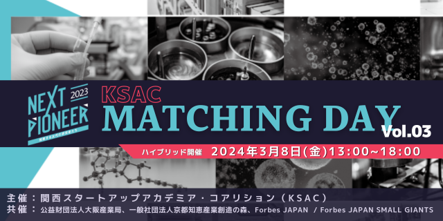 第3回関西アカデミックアントレプレナーイベント開催! Forbes JAPAN × KSAC「NEXT PIONEER -挑戦する次代の研究者たち- MATCHING DAY Vol.03」
