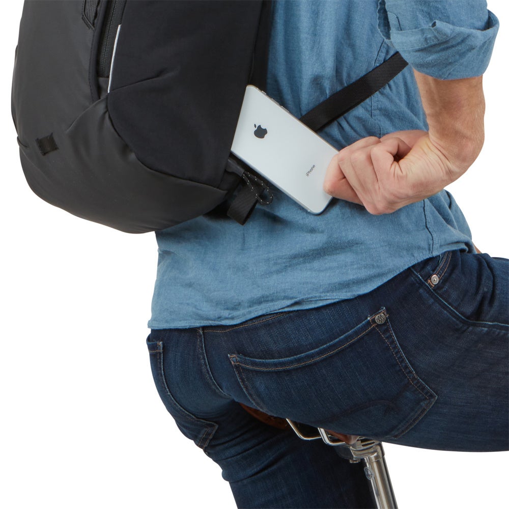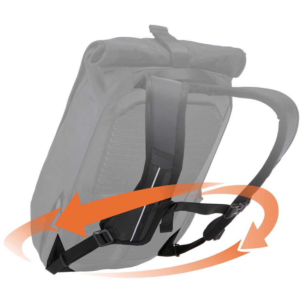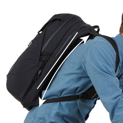 ノートPCを⼊れても背面がフラットにならず、背中のカーブに沿うフロートPCポケットで乗⾞時の前傾姿勢を⾃然にサポートします。Thuleのダウンヒル⽤バッグの技術を導⼊したハーネスは、幅広の形状と低位置で固定できるチェストストラップで体をホールド。ウェストベルトのないすっきりした外観ながら⾼い安定感を与えます。多数のエアチャネルで通気性に優れる背面パッドは、蒸し暑い日本の気候に配慮したデザインです。