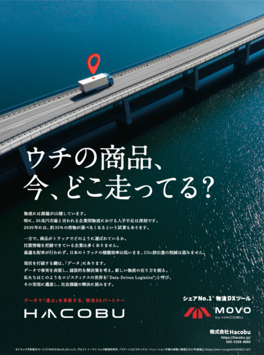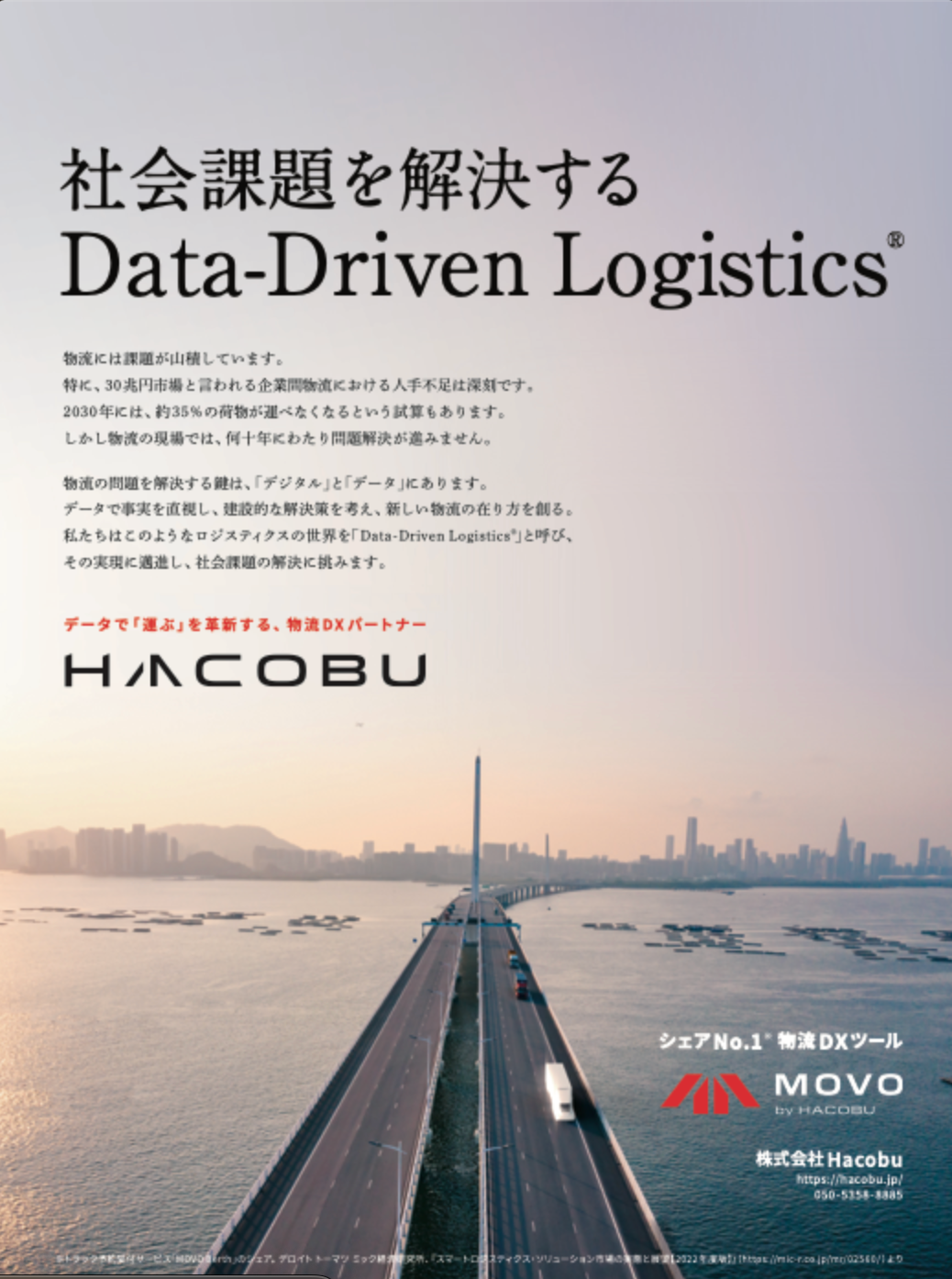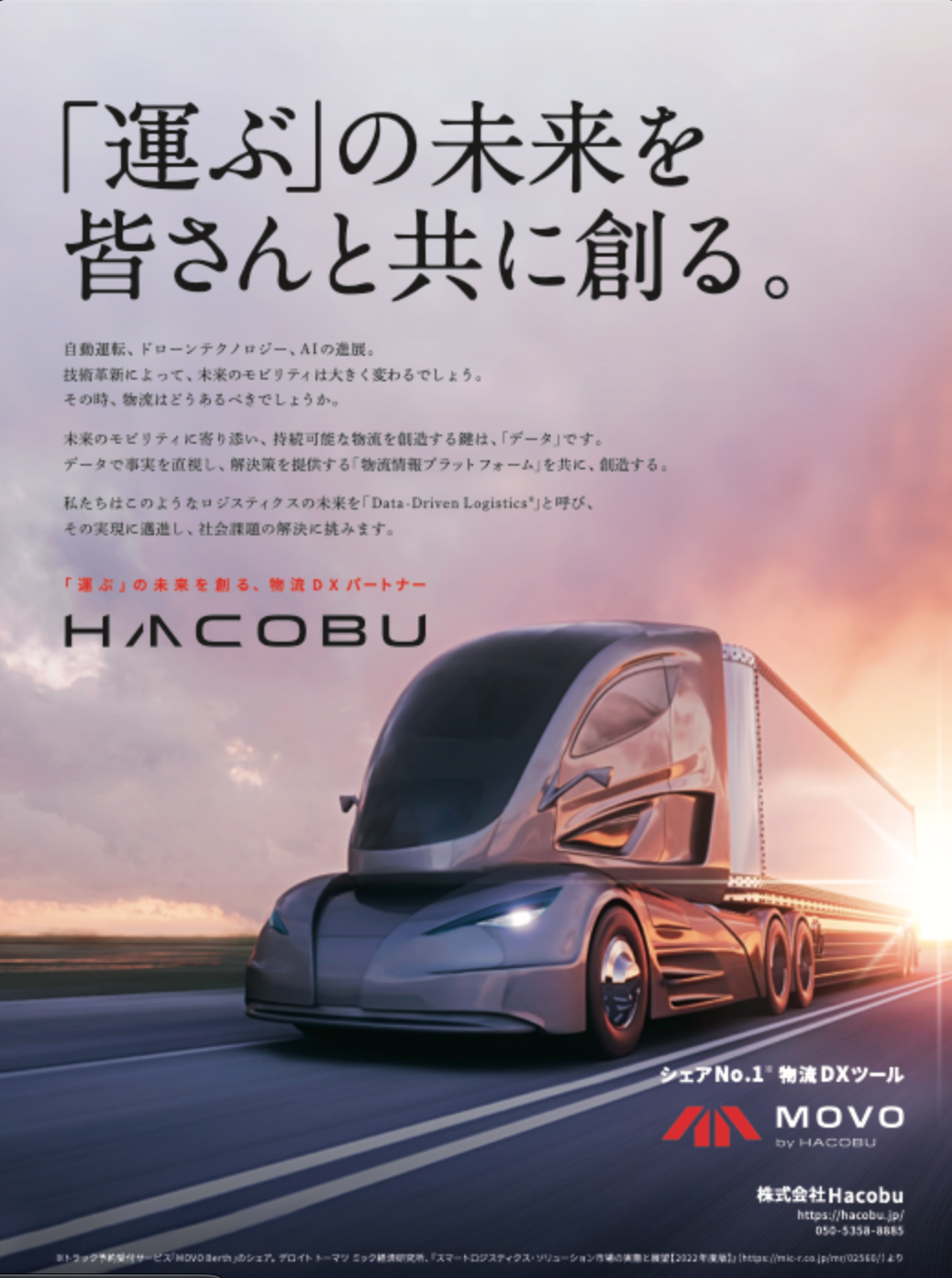 「物流を社会アジェンダ化することで、山積する物流課題を解決したい」というHacobuの決意を伝えるために掲載しました。