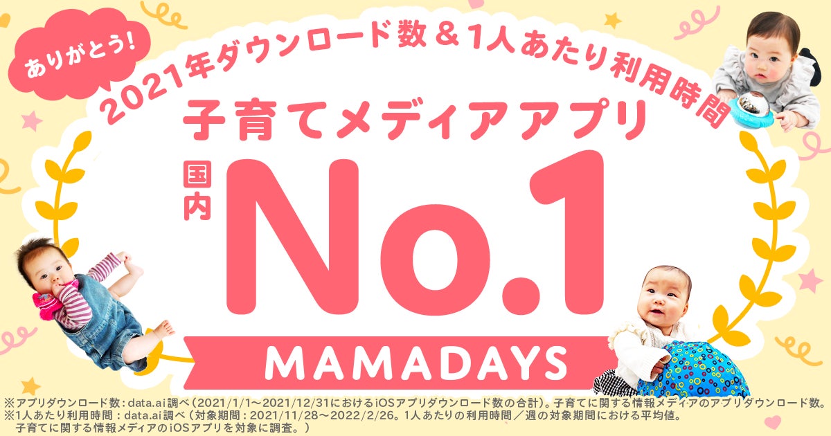 『MAMADAYS(ママデイズ)』、子育てメディアアプリで2021年ダウンロード数国内No.1(*1)および1人あたり利用時間国内No.1(*2)を獲得
