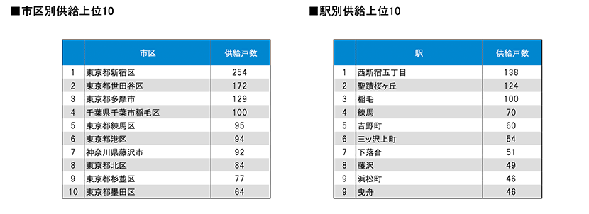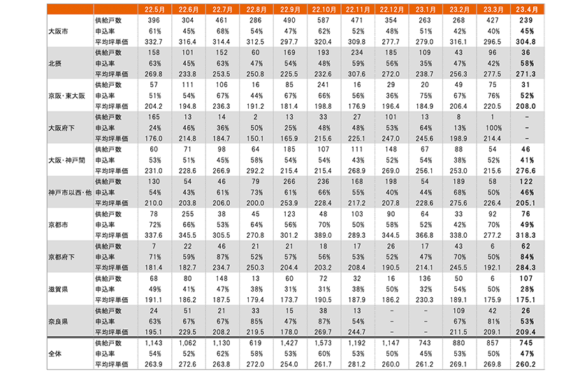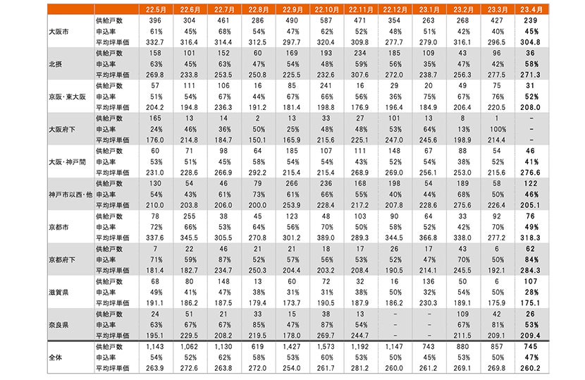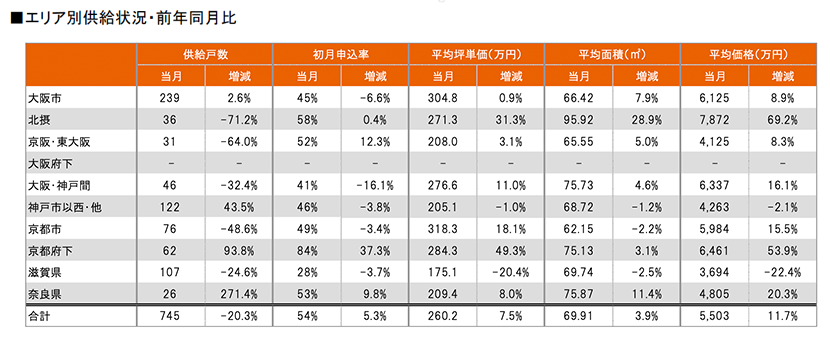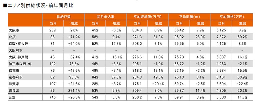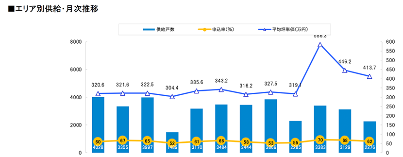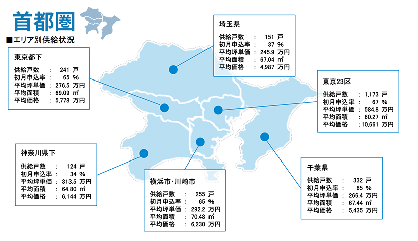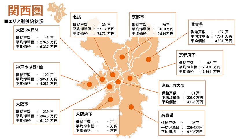 集計対象エリアは首都圏及び関西圏で、それぞれのエリア別相場情報、需給動向、着工件数等を集計しました。