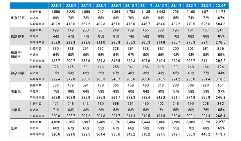 月例新築マンション動向発表~首都圏の供給戸数、前年同月比で33.8%減(2023年4月度分譲実績)2023年7月号~