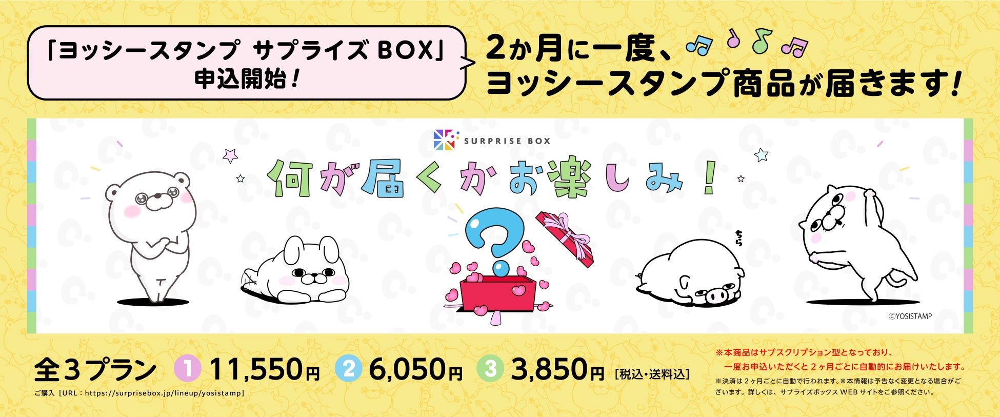 SNSで人気のキャラクター『ヨッシースタンプ』がサブスクリプションサービスサプライズボックスに登場!オリジナルアイテムを2ヶ月に一度 “1BOX”にしてお届けします!