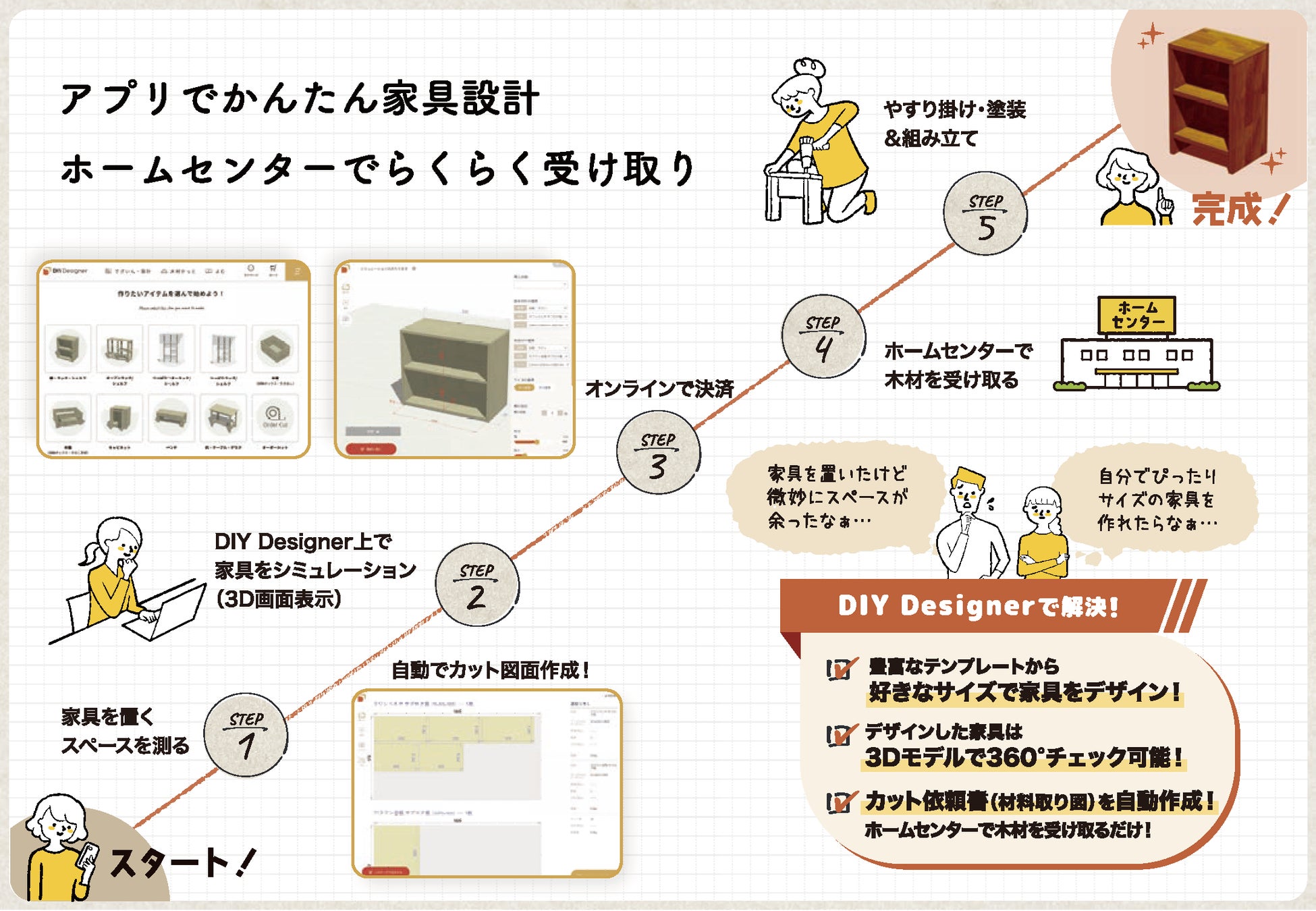 誰でも気軽にオーダーメイド寸法の家具が設計できるサービス「DIY Designer」ホームセンターグッデイ64店舗にて導入
