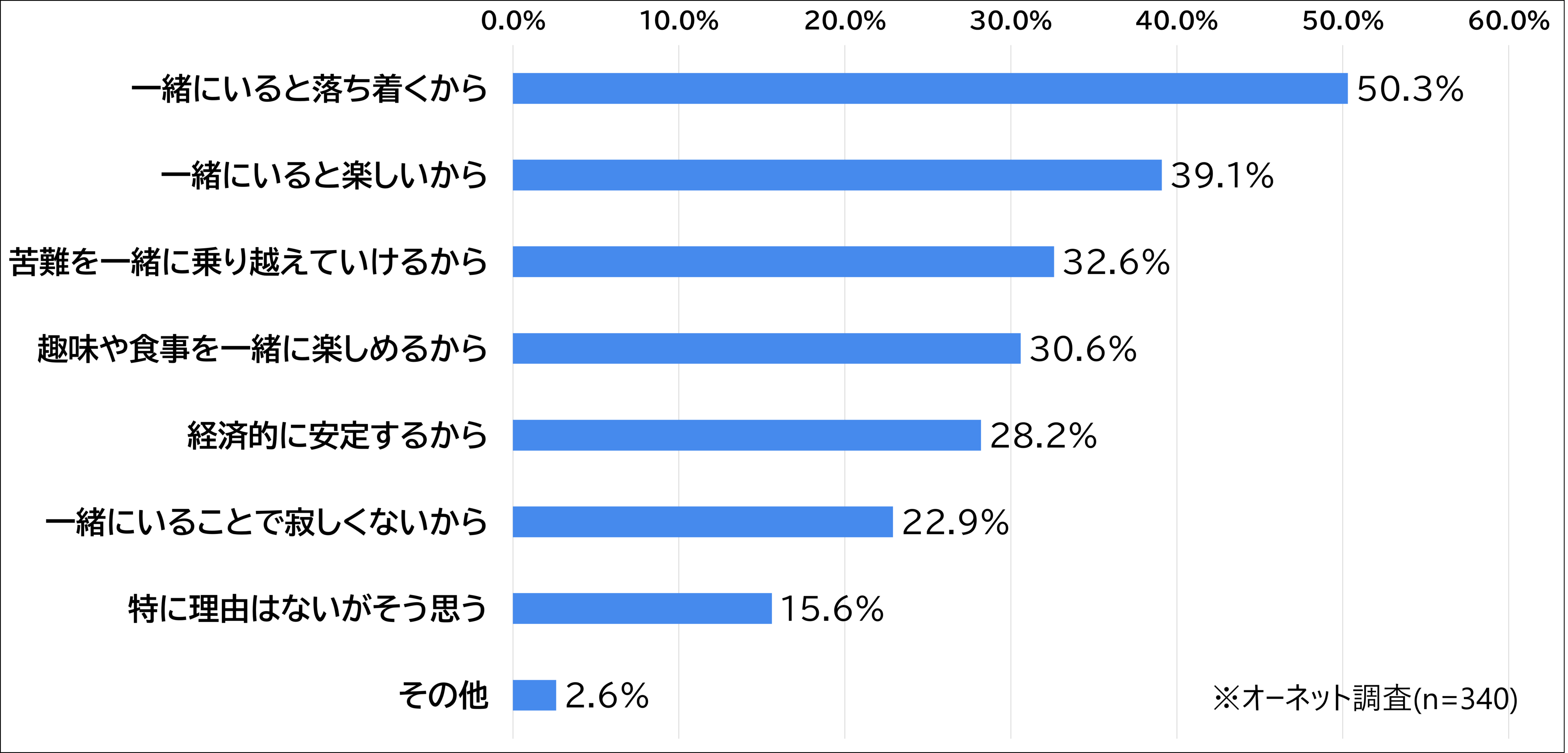 ✓ 「一緒にいると落ち着くから」の回答が50.3%でトップとなりました。