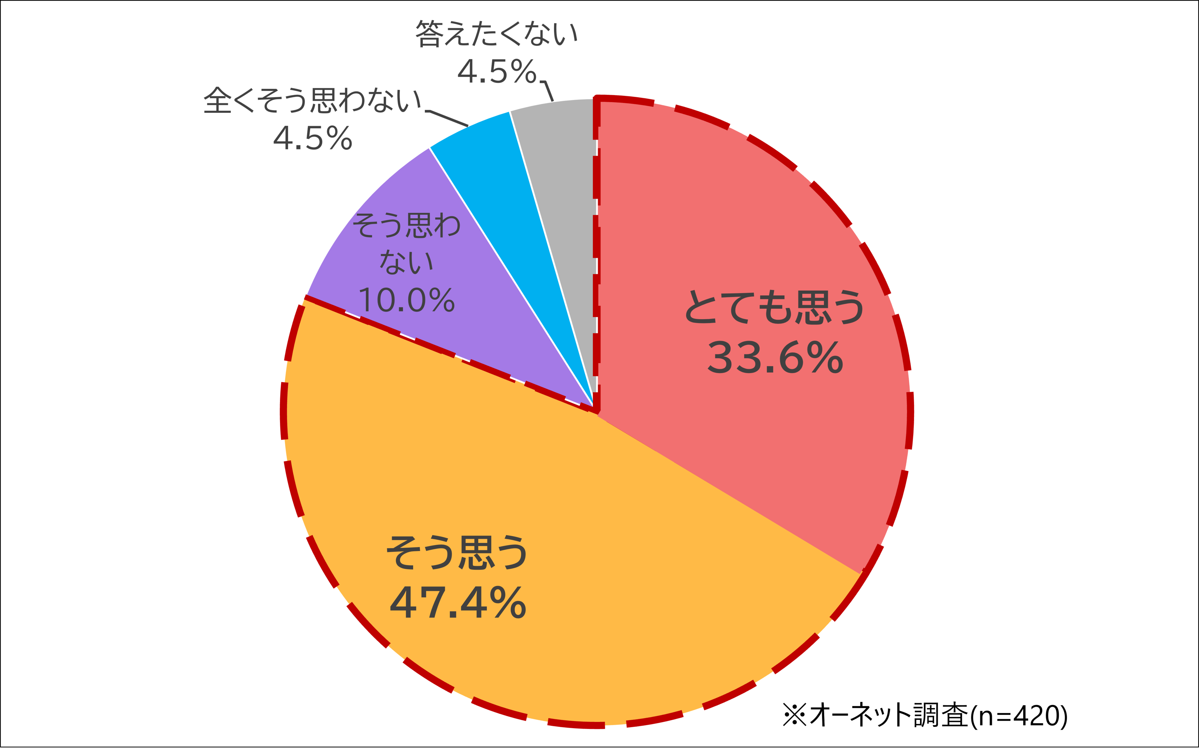 45歳以上の既婚男女に『あなたは現在のパートナーと結婚してよかったですか?』と聞いたところ、「とてもそう思う」の回答が33.6%「そう思う」の回答が47.4%となり、合わせて8割以上の男女が結婚してよかったと感じていることがわかりました。