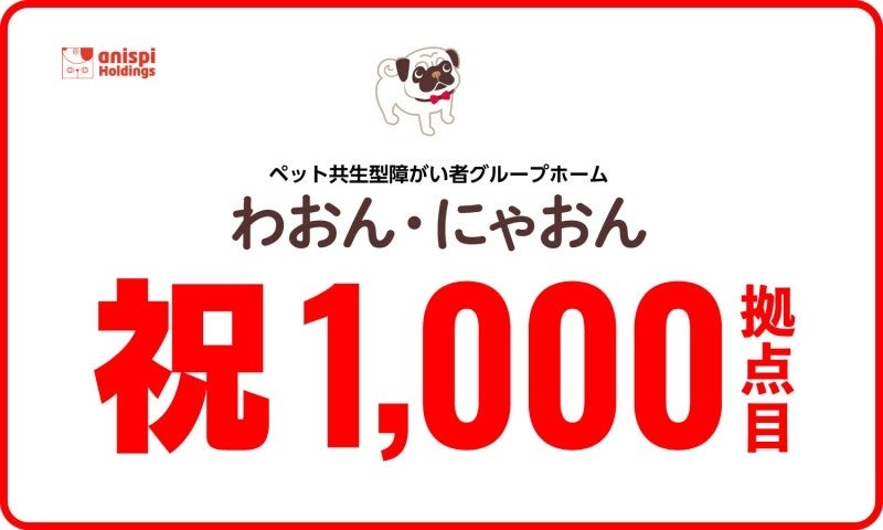 ペット共生型障がい者グループホーム「わおん」「にゃおん」は、おかげさまで4年目の2022年7月1日付けで1000拠点を突破いたしました。参画企業様、協力業者様、ご利用者様、スタッフ等、関わる方へ心からの感謝を込めまして1000店舗目となる「わおん水元公園A棟」にて「1000拠点開設記念式典」を開催いたします。