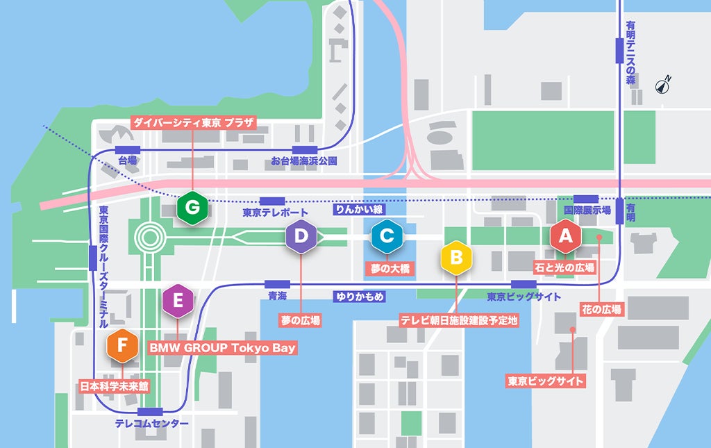 ・体験エリア:【A】シンボルプロムナード公園内 花の広場・石と光の広場(東京都江東区有明3-7)