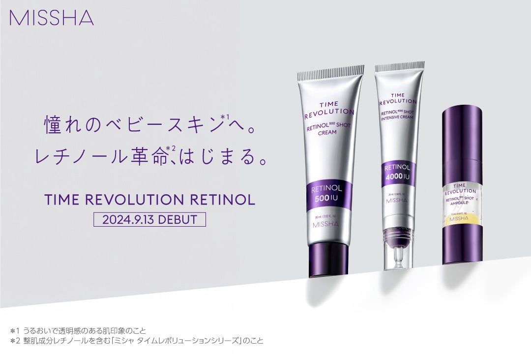シリーズ累計出荷数9,300万個*³を突破したミシャのベストセラーの発酵スキンケア「ミシャ タイムレボリューション シリーズ」から、待望のレチノール*²配合の美容液とクリーム2種が登場。