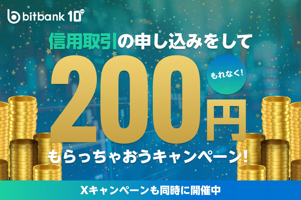 【暗号資産取引ならビットバンク】信用取引の申し込みをしてもれなく200円をもらっちゃおう!キャンペーンを開催!