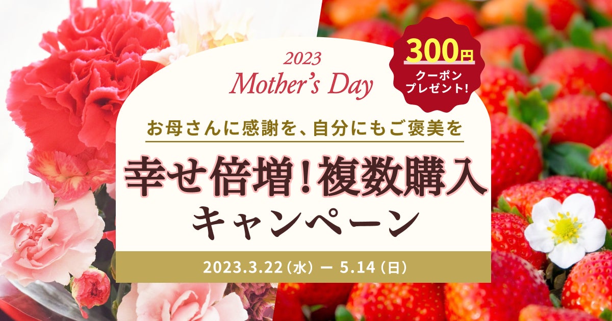 ・【複数購入キャンペーン】3月22日〜5月14日に、義理のお母さんや自分へのご褒美として母の日ギフトを複数購入した方に300円分クーポンをプレゼント