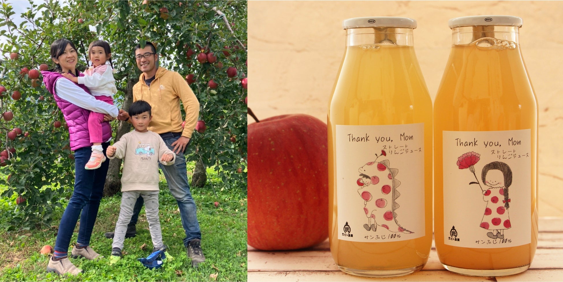 酸化防止剤無添加で、砂糖などは加えずりんごを搾っただけのりんご100%のジュース。濃厚な飲み口のサンふじとあっさりした飲み口のサンふじの2種(各5本ずつ)を母の日オリジナルラベルでラッピング。ビールや炭酸水で割るのはもちろん、温めても美味しくお召し上がりいただけます。